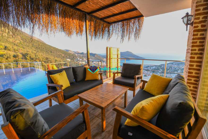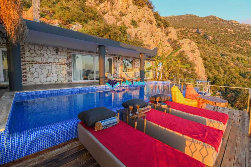 Villa Samui, Akbel bölgesinde konumlanan deniz manzaralı villalarımızdandır.6 işi konaklama kapasitesi ile geniş ailelere ve arkadaş gruplarına ev sahipliği yapan Villa Samui, sonsuzluk havuzu ile Kalkan koyuna karşı muazzam günbatımı manzarasını izleme fırsatı bulabileceğiniz kiralık en ekonomik villalarımız arasında yer almaktadır.Havuzu korunaklı özelliği sayesinde muhafazakar ailelerimizin de tercih edebileceği Villa Samui, jakuzi keyfi yaparken bile deniz manzarasına hakim olabileceğiniz ideal yazlık villalarımızdandır.