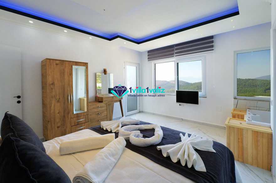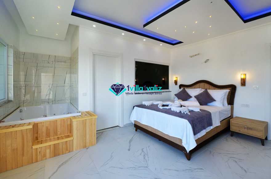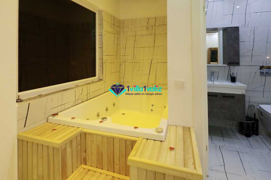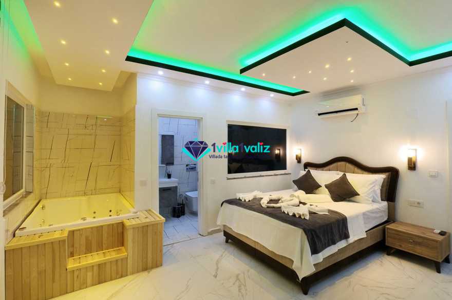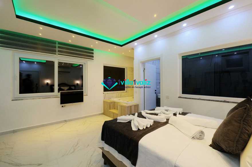 1. Yatak Odası : 1 adet çift kişilik yatak, klima, elbise dolabı, komodin, jakuzi makyaj masası ve banyo tuvalet bulunmaktadır.