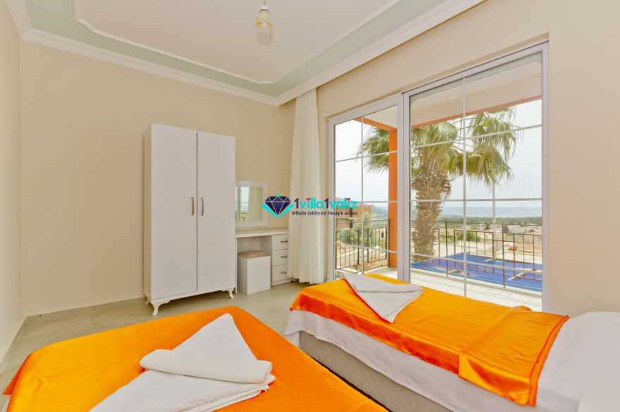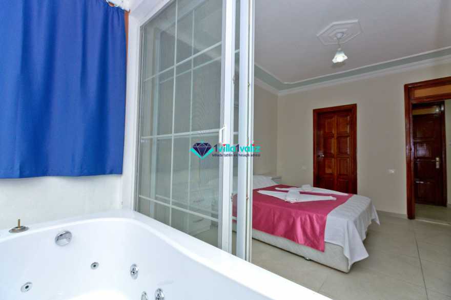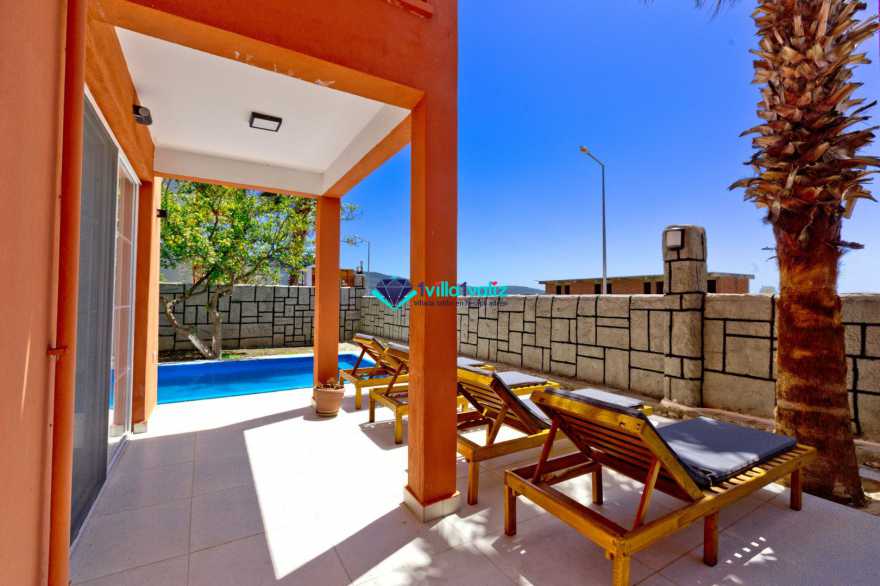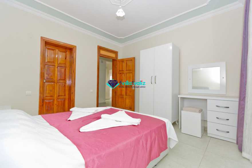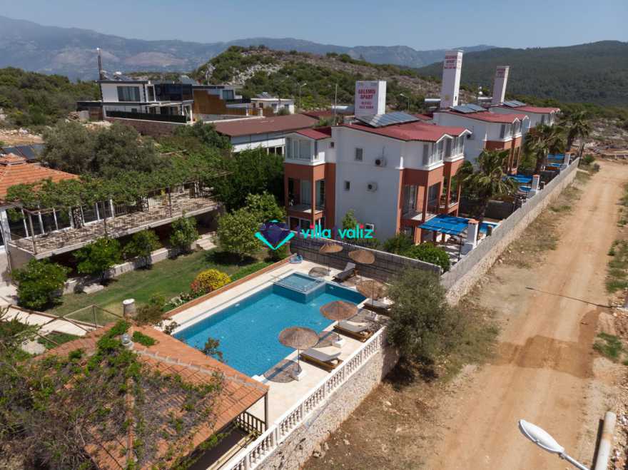 Antalya'da Kaş'ın Patara mevkiinde kalabalık arkadaş grupları ya da geniş aileler için uygun olan villamız, özel yüzme havuzu, oda içi jakuzi, havuz başı terasta barbekü (mangal), 4 yatak odası, 2 ebeveyn banyo tuvaleti, 1 ortak banyo tuvalet ile 8 kişilik konaklama kapasitesine sahiptir. Villamızın geniş bir havuz teras alanı bulunmakta olup her odanın kendine ait özel bir balkonu bulanmaktadır. Yine villamızda size ait özel havuzun dışında tesisimiz bünyesinde yer alan ortak bir alanda hem çocuk hem de yetişkinler için bir yüzme havuzu daha size hizmet vermektedir. Doğa içerisinde yer alan villamızın tamamı böcek, sinek, kelebek, haşereler vb. için düzenli olarak ilaçlanmakta olup tüm kapı ve pencereler sivrisinek korunaklıdır. Denize uzaklığı araçla 5 dk. mesafede yer alan villamızda huzur dolu bir tatil sizleri bekliyor.