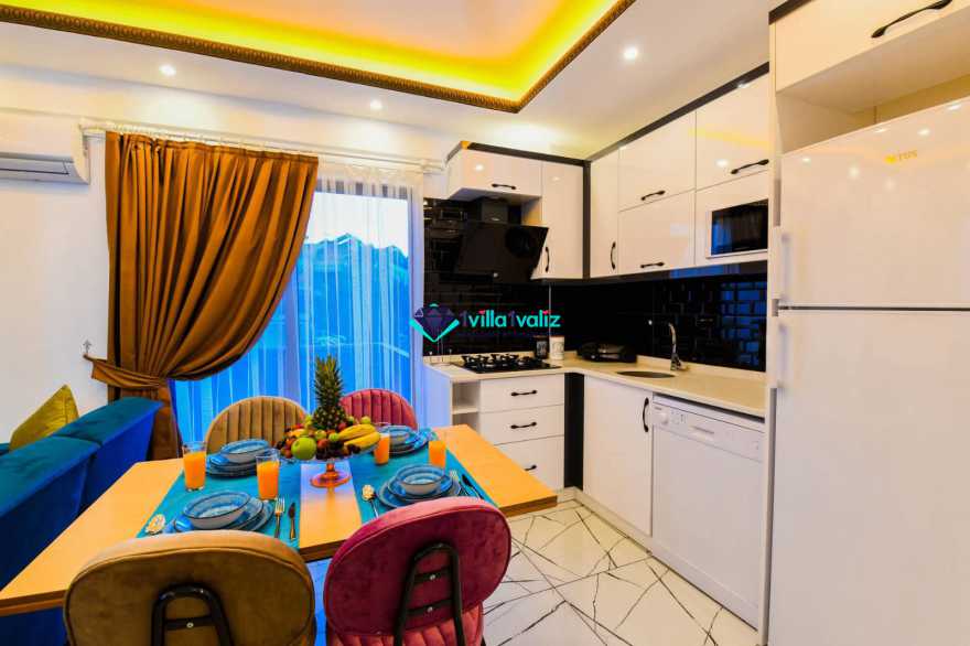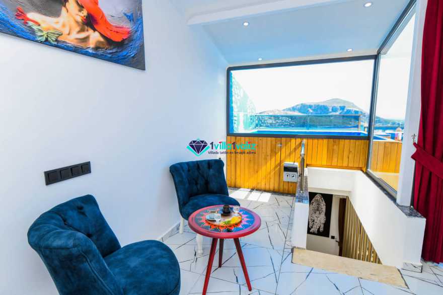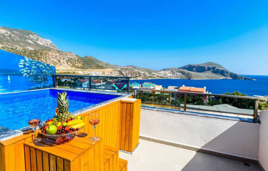 Suit Morgana, Kalkan Kalamar Mevkii'nde bulunuyor. Oldukça güzel deniz manzarasına sahip olan suit dairemizin terasında keyifli bir jakuzi bulunuyor. 2 yatak odası ile 4 kişilik konaklama kapasitesine sahip olan dairemiz ekonomik ve konforlu bir tatil arayışında olan misafirlerimize hitap ediyor.
