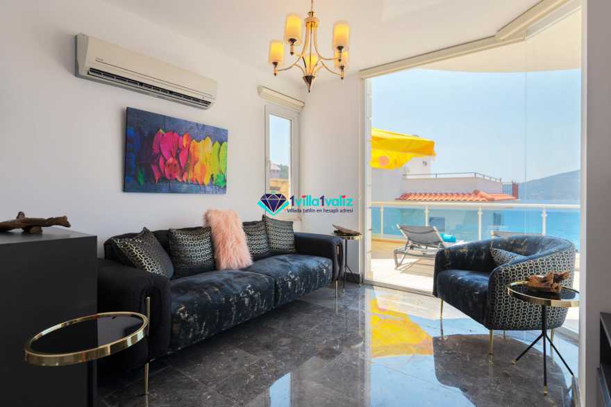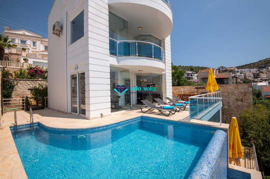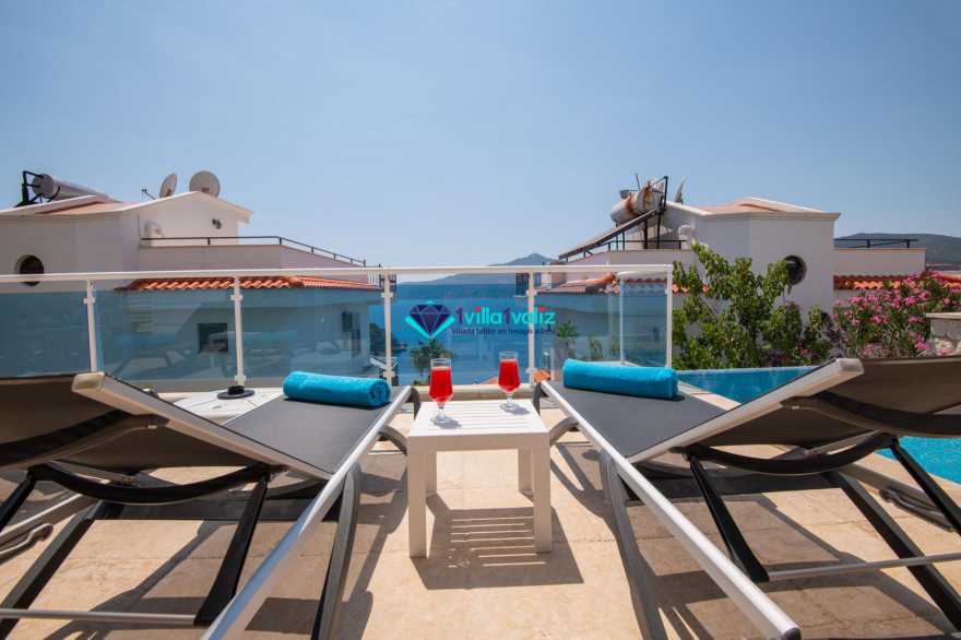 Kalkan kışla mevkiisinde bulunan 4 yatak odalı muhteşem deniz ve doğa manzaralı villamız 8 kişilik konaklama kapasitesine sahip olup geniş aileler ve arkadaş grupları için son derece uygundur. Villamız ilk kiralama sezonuna 2020 yılında başlamış bulunmakta olup tüm eşyalar yenidir. Villamızın bulunduğu konumdan kışla ve mahal beach'e yürüyerek ulaşım sağlanmaktadır.