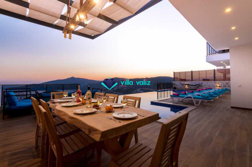 Kaş, Kalkan, Kızıltaş bölgesinde, deniz manzaralı lüks bir villa seçeneği olan Villa Primavera, havuz ile denizin bütünleşmiş görüntüsü ile eşsiz bir manzaraya sahiptir. Modern mimari çizgileri olan villamızda; rahat oturma grubu, bilorda masası, sinema salonu, satranç takımıve tavla gibi eğlence seçeneklerininde bulunması eğlenceli ve keyifli tatil geçirmenize imkan sunar. 4 yatak odalı 8 kişi konaklama kapasitelidir.