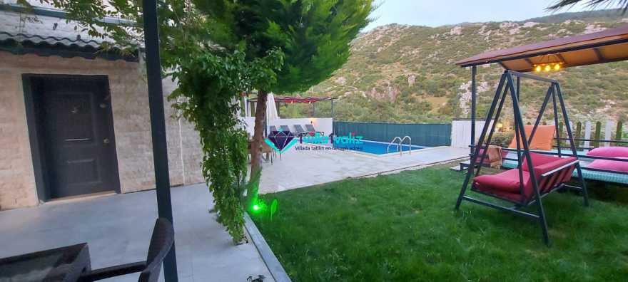 Yaz tatilini Villa Reyhan’da yapmak isterseniz villamız Kalkan İslamlar bölgesinde bulunmaktadır. Villamızda 3 tane yatak odası bulunmaktadır. Kapasitesi 6 kişi olan villamız şık mimari tasarımı ile sizlere mükemmel tatil imkânı sağlar. Villa Reyhan’da 3 tane banyo vardır. Her oda da ebeveyn banyosu ulunmaktadır. Havuzun olduğu terasın etrafı çevrilidir ve dışarıdan görünmemektedir. Bu yüzden villamız çoğunlukla muhafazakâr kişiler ve yeni balayı çiftleri tarafından daha çok tercih edilmektedir. Villa Reyhan’da sizi ayrıca doğa ile iç içe temiz hava, büyüleyici orman ve deniz manzarası ile sizleri harika bir tatil bekliyor. Akşam batarken teras da gün batımını ayaklarınızın altındaki nefes kesen manzara ile izlerken sevdiklerinizle ve ailenizle sohbet etmenin vereceği keyif ve huzur tatilinizi özel kılacaktır. Villamıza market ve restorana yürüme mesafesinde merkeze ve plaja ise 10 dakika araç mesafesinde. Sizde sevdiklerinizle unutulmaz anılar biriktirmek ve keyifli zamanlar geçirmek için Villa Reyhan’a bekleriz.