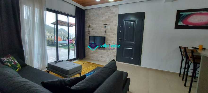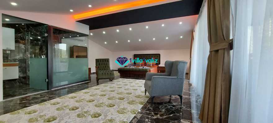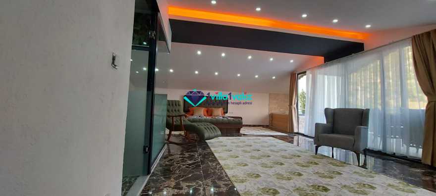 Villamızın salonunda sizi şık bir oturma grubu ile klima, tv, internet, uydu, ütü, ütü masası, koltuk, sehpa ile ferah bir salon bekliyor olacaktır. Havuz terasına çıkış yapılmaktadır.