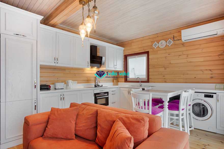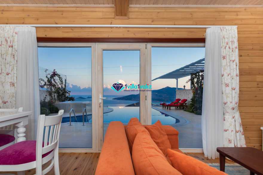 Villamız açık mutfaklı, modern ve kullanım açısından rahat edebileceğiniz imkanları olan lüks ve konforlu bir salona sahiptir.