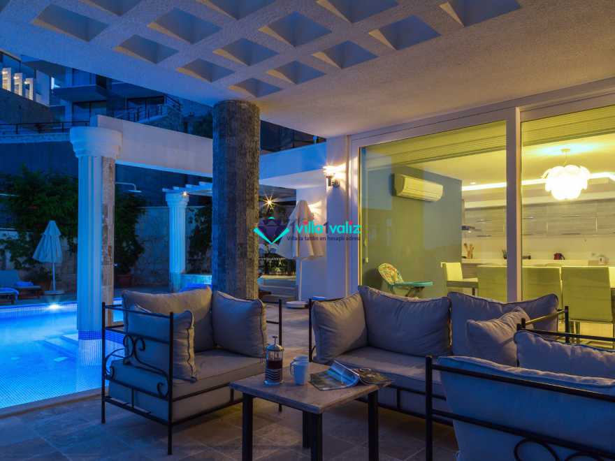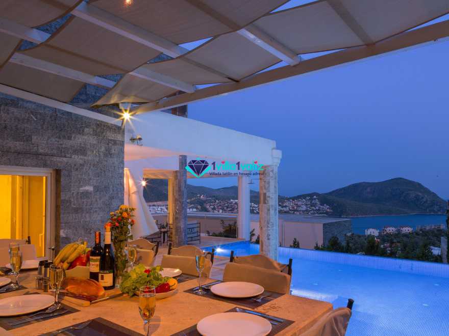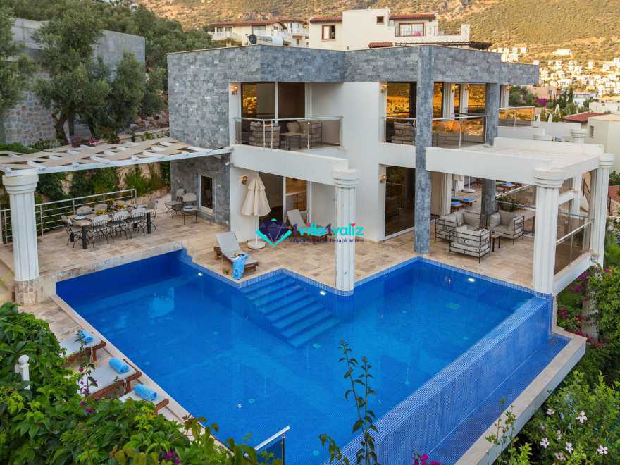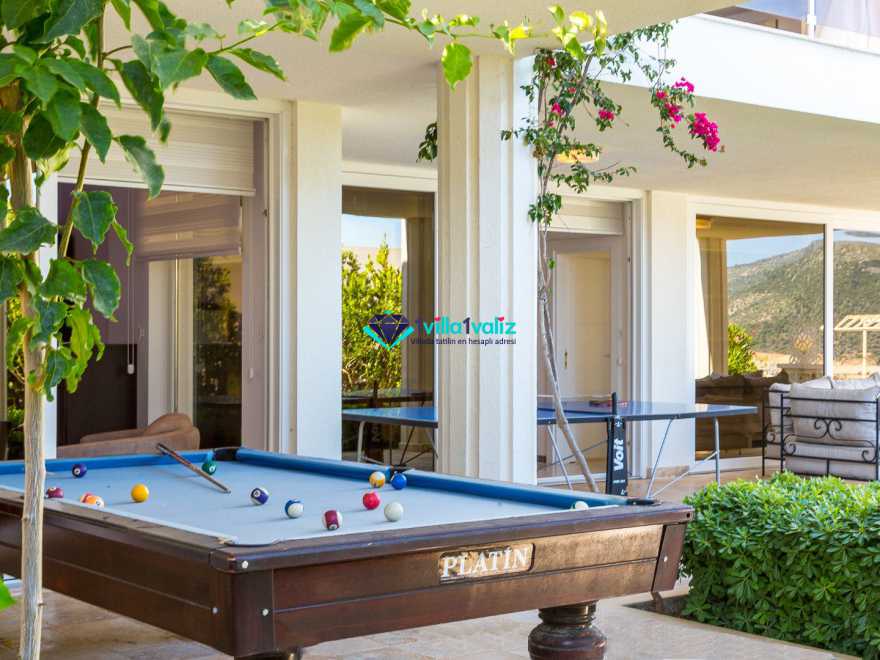 Türkiye’nin turizm cenneti Kalkan’ın Kalamar mevkiinde bulunmaktadır. 400 m2 kapalı oturma alanı ile oldukça geniş bir villa olan Villa ADA, 2 katlı olup 1 tanesi jakuzili olmak üzere, toplam 4 süit odada 8 kişiye kadar konaklama kapasitesine sahiptir. Büyüleyici deniz manzarasıyla ön plana çıkan villada, fitness salonu, bilardo masası ve masa tenisi mevcuttur. Kalabalık aileler ve arkadaş grupları için oldukça ideal bir yazlık villada kusursuz ve unutulmaz bir tatil geçirmeniz için tüm detaylar en ince ayrıntılarına kadar düşünülmüş ve hizmetinize sunulmuştur.