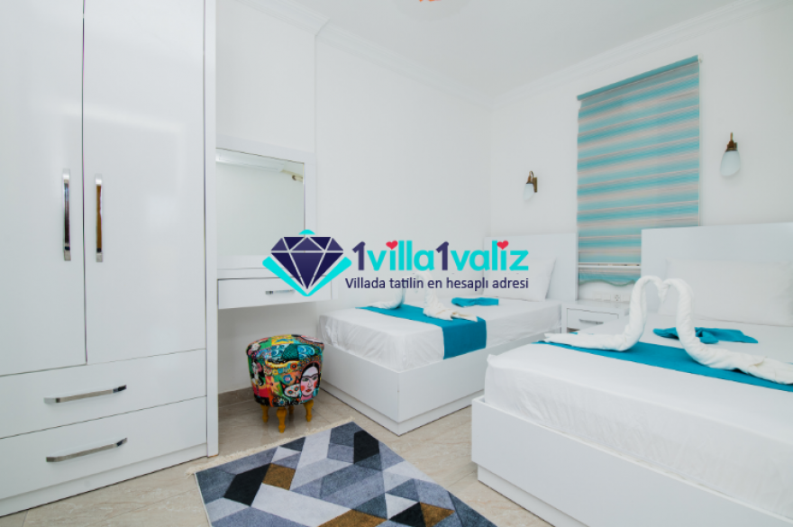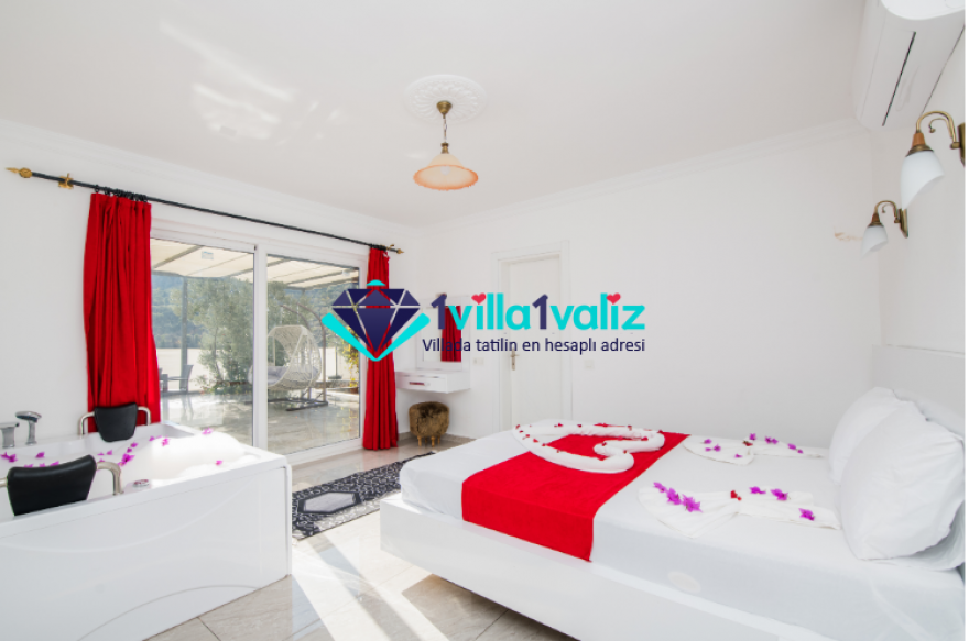 Kiralık yazlık villamız Sarıbelen mevkisin de yer almaktadır. 2 yatak odalı 4 kişilik kapasiteye sahiptir. Doğa içerisinde sakin sessiz izole tatil için düşünülmüştür. Balayı villası olarak dizayn lüks eşyalar kullanılmıştır. Süit yatak odasında bir adet jakuzi bulunmaktadır. Çekirdek aileler ve muhafazakar aileler için oldukça uygun havuz terası kapatılmıştır .Özel yüzme havuzu ve güneşlenme yerleri oldukça rahatlıkla kullanılmaktadır.