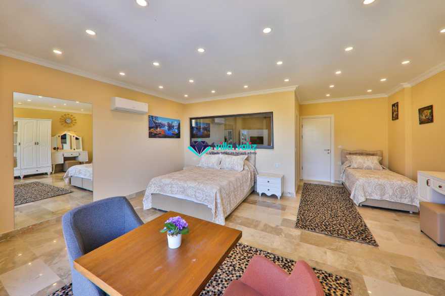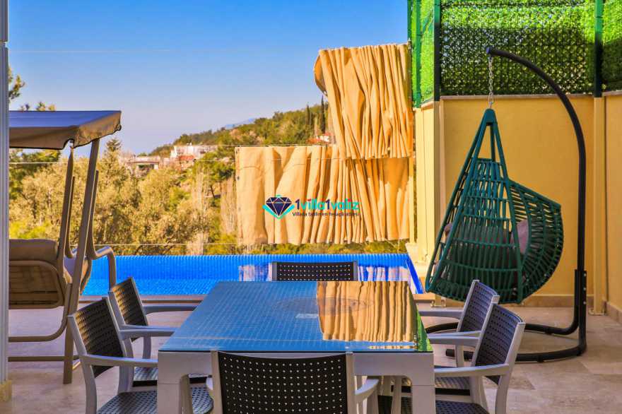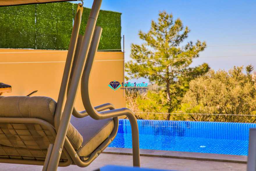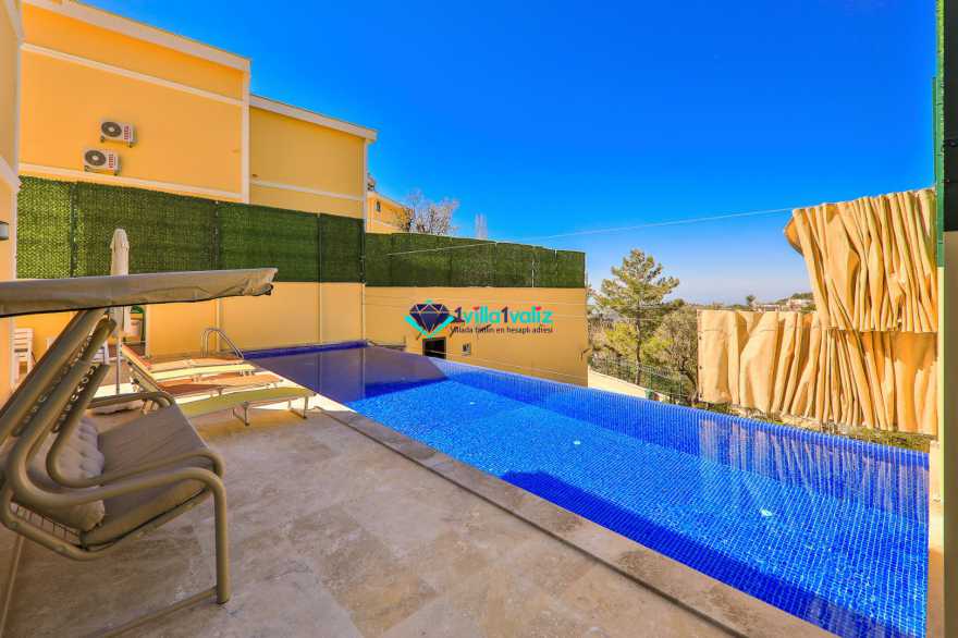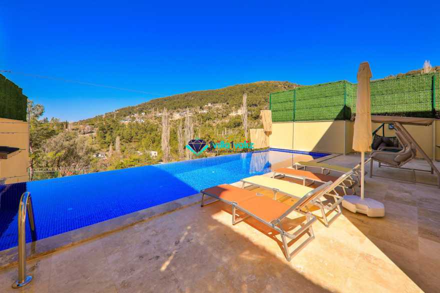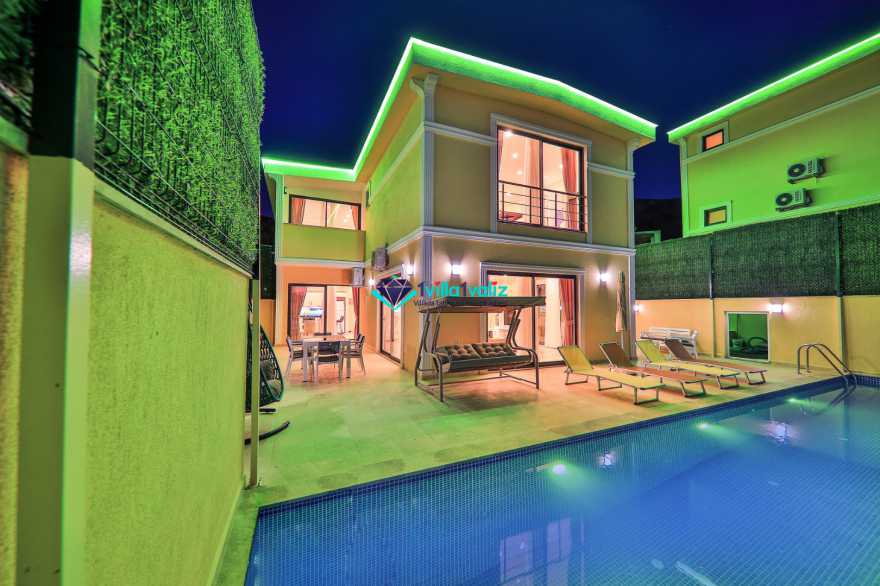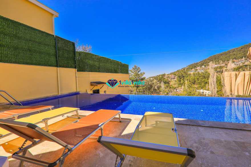 Villa Akasya, Kalkan İslamlar mevkiinde konumlanmakta olan muhteşem doğa manzarasına hakim kiralık villalarımız arasında yer almaktadır. Şık ve konforlu bir şekilde dizayn edilen villamızda 3 adet yatak odası bulunmakta olup, 8 kişiye konaklama imkanı sağlamaktadır. Villamızın havuz ve havuz terası korunaklı hale getirilmiştir. Dışarıdan bir kimse tarafından görünmemektedir. Muhafazakar geniş aileler ve arkadaş grupları rahatlıkla tercih edebilirler. Tüm yılın vermiş olduğu yorgunluğu atabileceğiniz hamam, sauna, soğuk duş odası, ısıtma havuzu ve bulunmaktadır. Tatilinizi keyifli bir hale getirebilmek için masa tenisi, langırt ve spor aleti yer almaktadır.