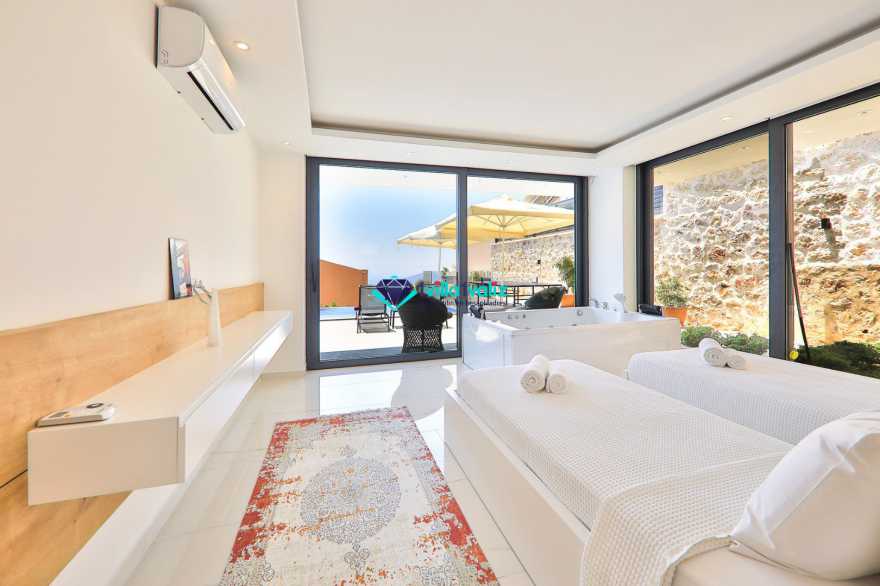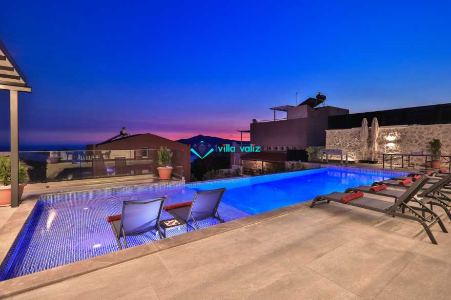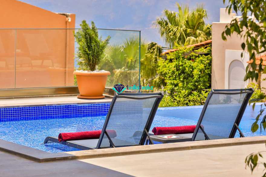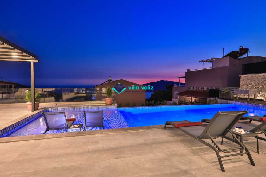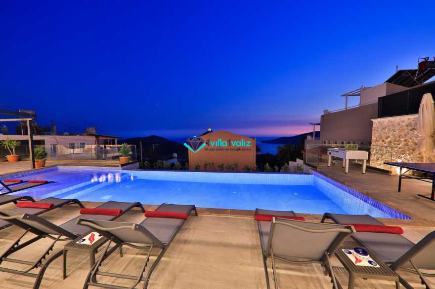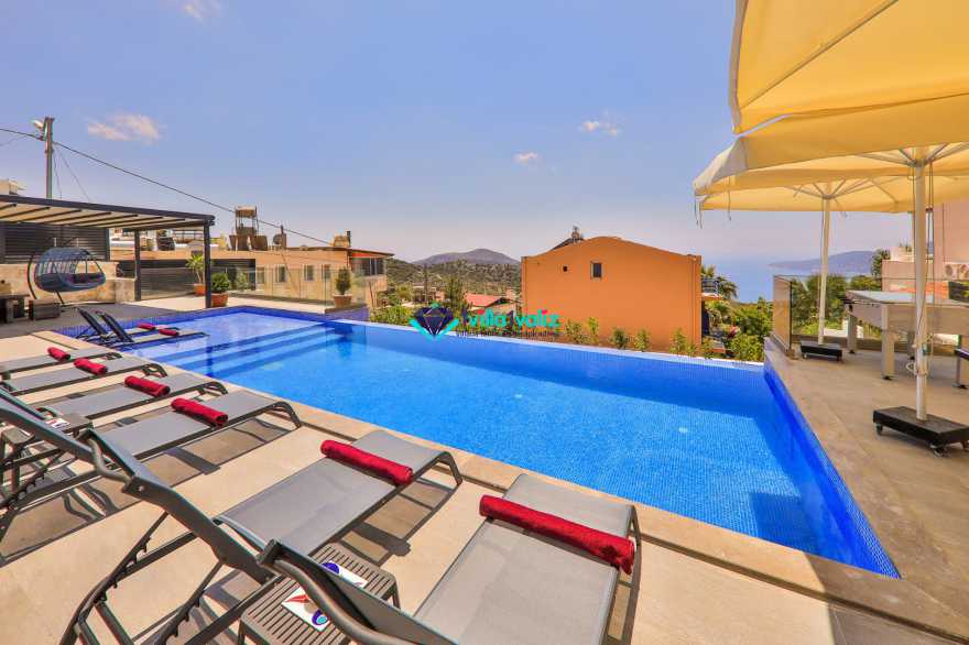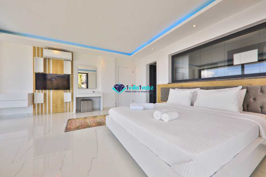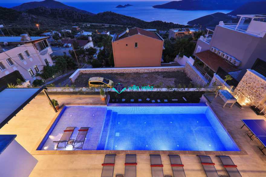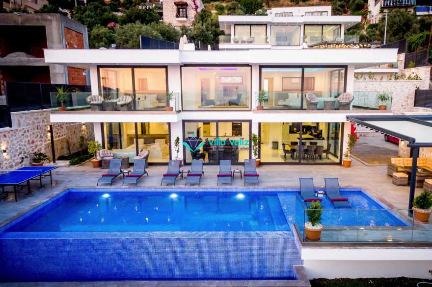 Kalkan'ın Kördere mevkisinde bulunan Villa Ali Paşa 3 yatak odalı, 6 kişi konaklama kapasitelidir. Muhteşem yapısı ve dikkat çeken mimarisi ile sizlere modern bir tatil imkanı sunan lüks kiralık villamızın bahçesinde masa tenisi, langırt ve mini çocuk parkı bulunmaktadır. Tüm odaları jakuzili kiralık villamız deniz ve doğa manzarasına sahiptir. Odalarındaki geniş tasarımlı boydan cam özelliği sayesinde villanın her köşesinden deniz manzarasını görebilmeniz mümkündür. Villanın dizaynında kullanılan eşyaların tümü yeni olup, birinci sınıf kalitededir. Büyük havuzu, geniş bahçe katı ile sizlere muhteşem bir tatil imkanı sunan jakuzili lüks kiralık villamız Villa Ali Paşa denize ve Kalkan merkeze 2.5 km uzaklıkta bulunmaktadır.