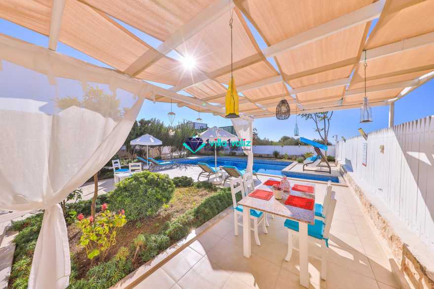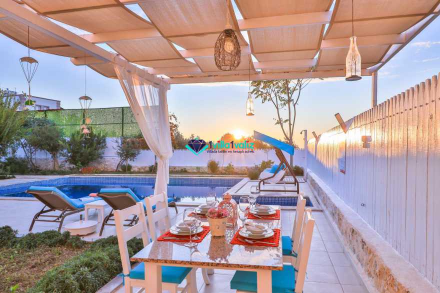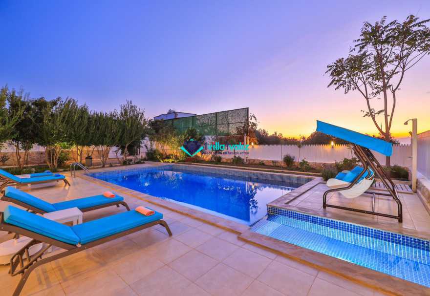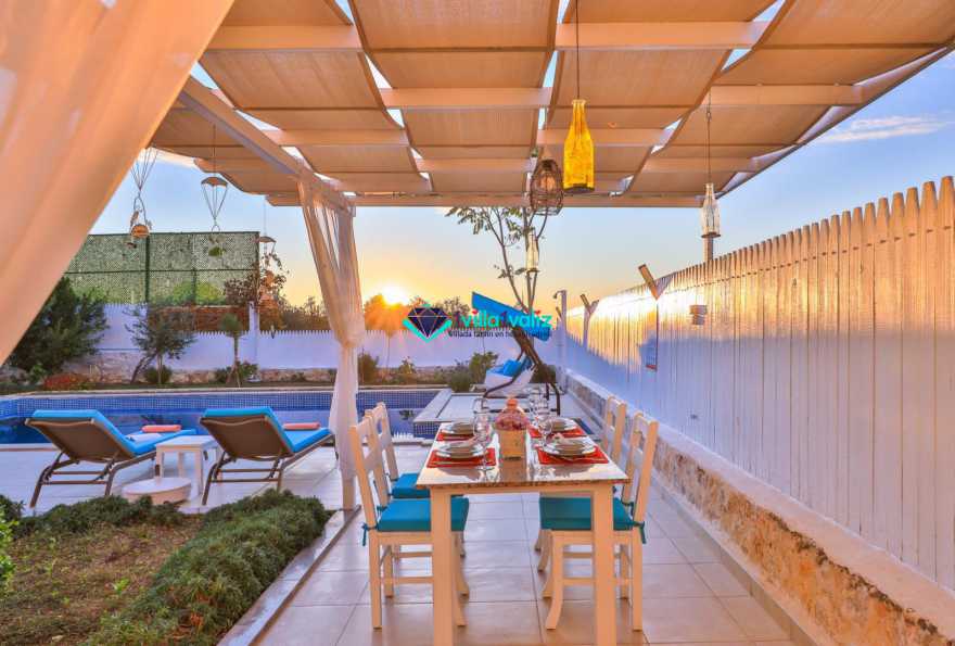 Villamız üzümlü bölgesinde konumlanmıştır. 2 yatak odalı 4 kişilik kapasiteye sahiptir. Havuz ve havuz terası muhafazakar ve korunaklıdır. Muhafazakar ve balayı çiftleri için harika tatil imkanı sağlanmaktadır. Özel yüzme havuzunda çocuk havuzu bulunmaktadır. Balayı suit odasında jakuzi diğer yatak odasında 2 adet tek kişilk yatak bulunmaktadır. Doğa içerisinde dünyaca ünlü patara plaj manzarası olan villamız bahçesinde salıncak yer almaktadır.