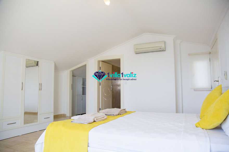 1. Yatak Odası: 1 adet çift kişilik yatak, klima, elbise dolabı, komodin, makyaj masası, banyo-WC ve balkon bulunmaktadır.