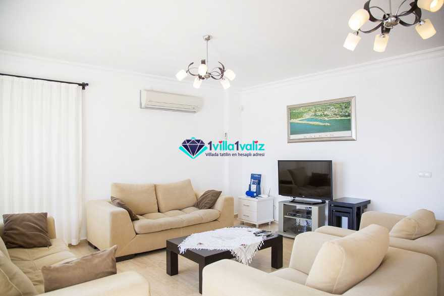 Oldukça şık dekore edilmiş salonda, oturma grubu, TV, uydu alıcı, DVD oynatıcı ve klima yer almaktadır. Ayrıca salondan havuz terasına çıkışta bulunmaktadır.