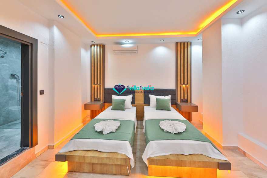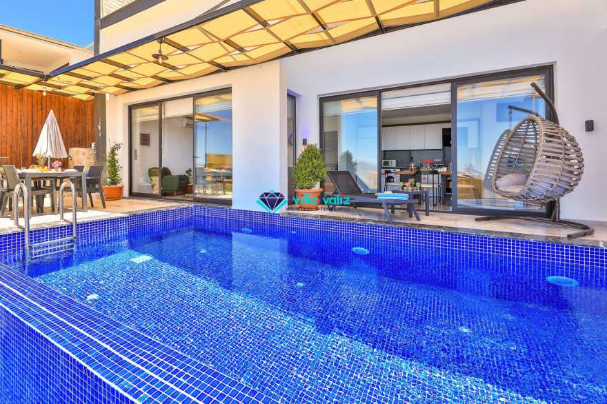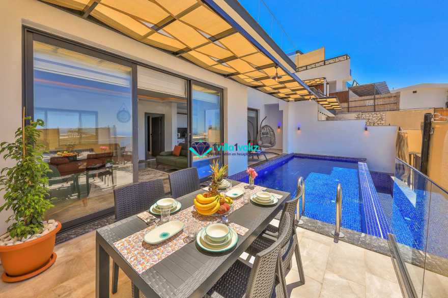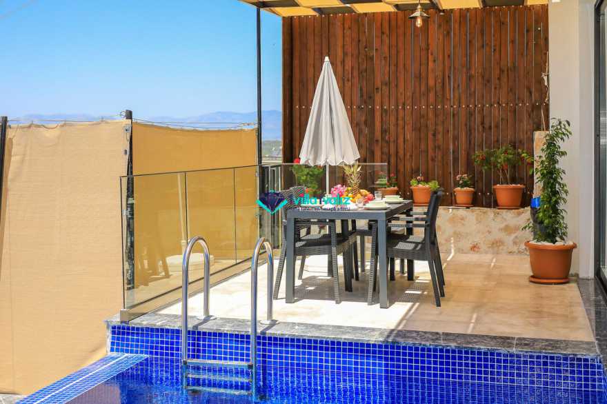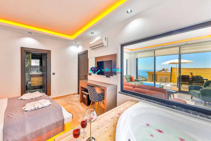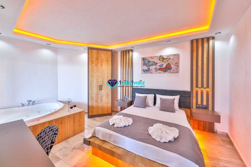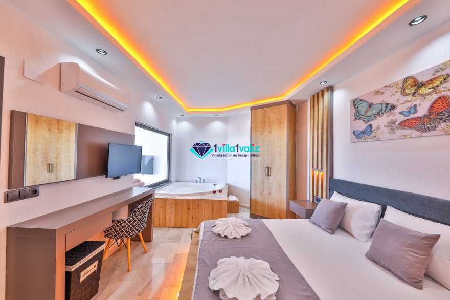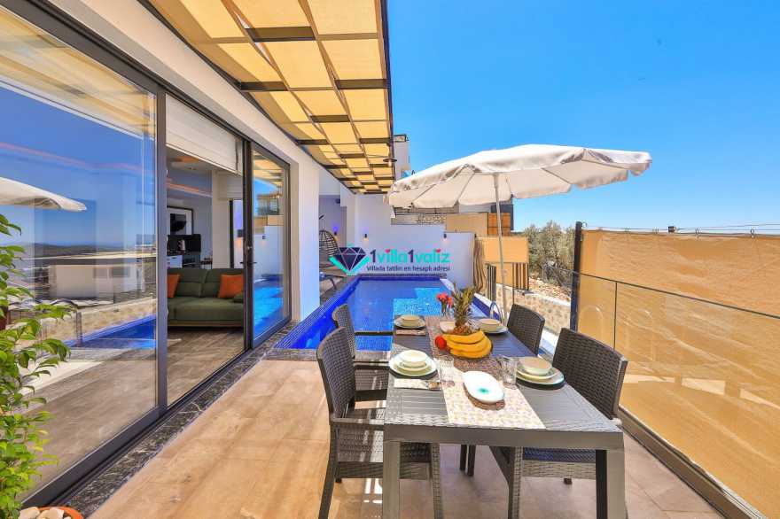 Villamız Kalkan Kördere bölgesinde yer almaktadır. 2 yatak odasına sahip tatil villamız 4 kişilik konaklama kapasitesine sahiptir. Kısmi deniz manzaralı konuma sahip olan tatil villamızın havuz alanı sizlere keyifli bir tatil ortamı sunmaktadır. Balayı çiftleri ve çekirdek aileler için ideal bir seçenek olan muhafazakar hassasiyete sahip misafirlerimiz içinde uygun bir tatil ortamı sunmaktadır.