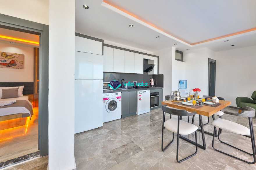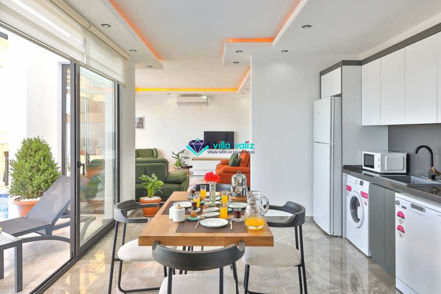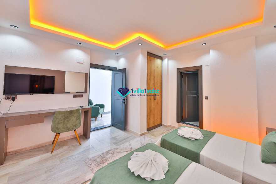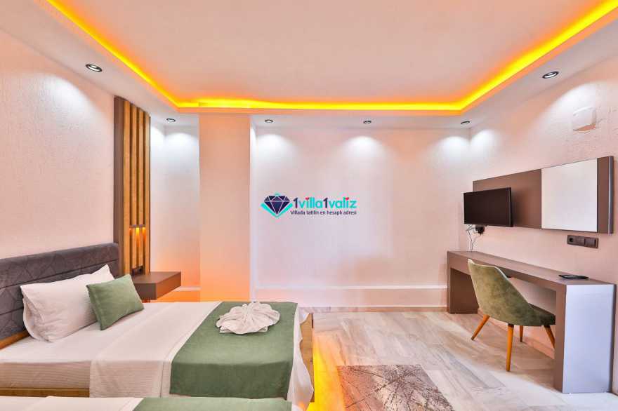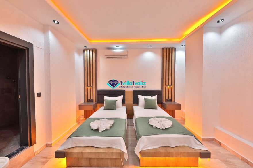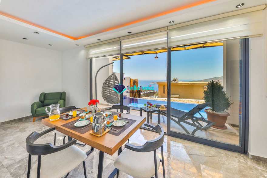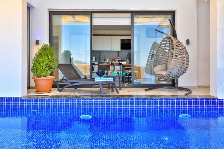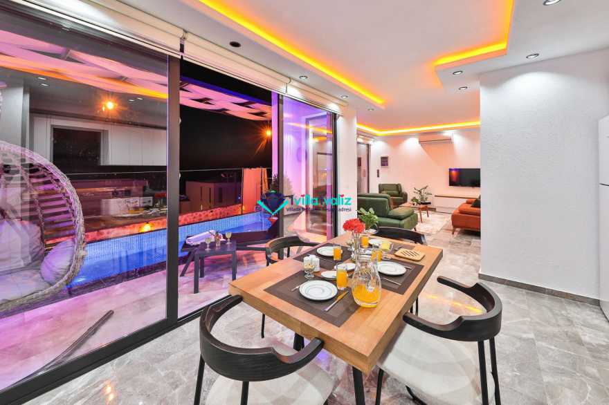 Villamız Kalkan Kördere bölgesinde yer almaktadır. 2 yatak odasına sahip tatil villamız 4 kişilik konaklama kapasitesine sahiptir. Kısmi deniz manzaralı konuma sahip olan tatil villamızın havuz alanı sizlere keyifli bir tatil ortamı sunmaktadır. Balayı çiftleri ve çekirdek aileler için ideal bir seçenek olan muhafazakar hassasiyete sahip misafirlerimiz içinde uygun bir tatil ortamı sunmaktadır.
