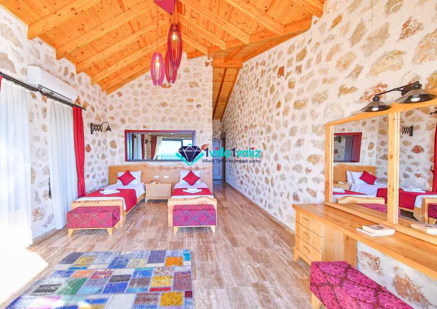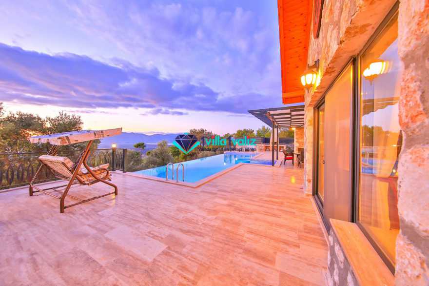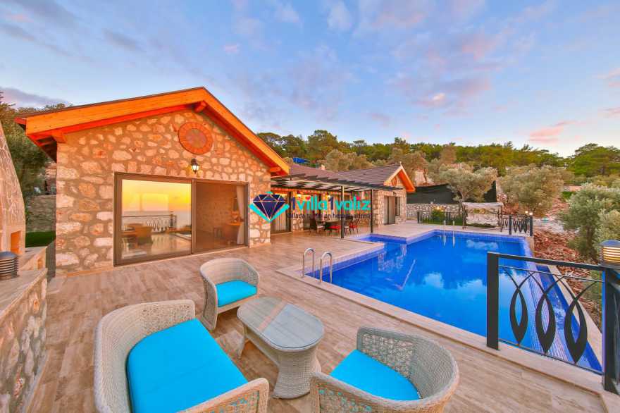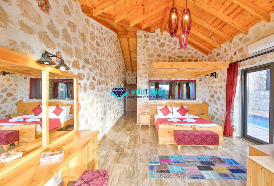 Havuz alanı doğal ortamdan kaynaklı olarak korunaklı olup her iki odasından da Patara'nın muhteşem gün batımı manzarası görülmektedir.