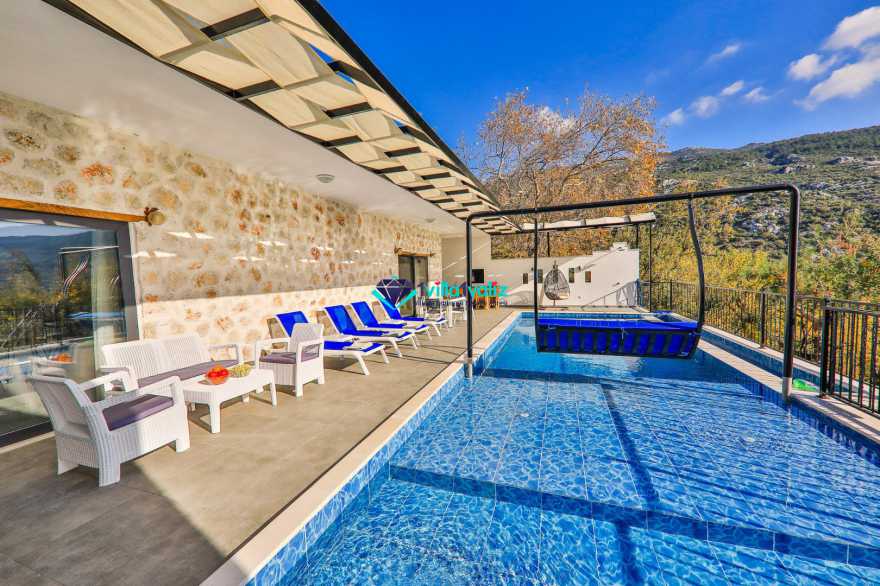 Yazlık kiralık villamız Kalkan İslamlar bölgesinde bulunmaktadır. 4 kişilik 2 yatak odalı olan villamız genellikle balayı çiftlerimizin ve muhafazakar ailelerimizin tercihi olacaktır. Özenle dizayn edilmiş olan villamızın içerisinde bulunan ısıtmalı havuz bulunmakta olup jakuzi özelliği de bulunmaktadır. Havuz terası korunaklı olan Villa Arya doğa ile iç içe bir manzaraya sahiptir.