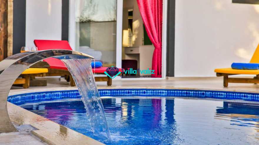 Villa Atropes, Kalkan İslamlar Köyü ‘nde, 2 yatak odalı 4 kişilik hem muhafazakar aileler için hem de muhafazakar çiftler için ideal bir seçenektir. Doğa içerisinde, korunaklı havuz terasına sahip, bu keyifli tatil villası sizleri beklemektedir.