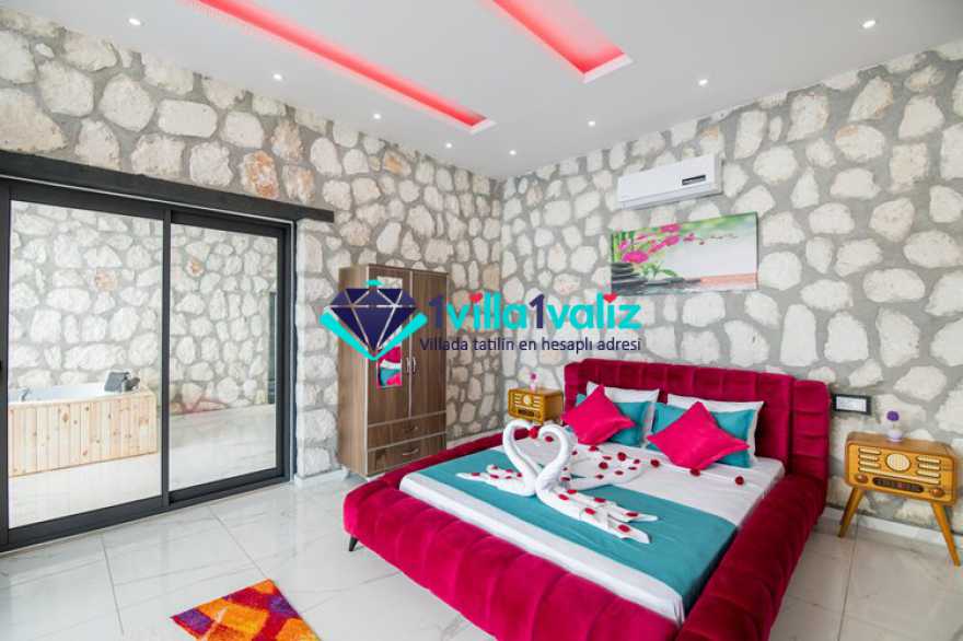 Villa Ayışığı, Antalya’nın turizm merkezi Kalkan’ın İslamlar köyünde bulunmaktadır. 2019 sezonunda ilk misafirlerini ağırlayacak olan villamız, balayı çiftleri düşünülerek tasarlanmış olup, tek oda, 2 kişi kapasitelidir. 13 metre uzunluğunda büyük bir sonsuzluk havuzuna sahip villamız Kalkan merkeze araçla 10 dakika uzaklıktadır. Uzaktan panoramik olarak deniz manzaralı ve korunaklı havuza sahip Villa Ayışığı tek katlı olup, taş ev konseptinde inşaa edilmiştir. Villada ısıtma özeliği olan 7x3 m., derinlik 1,30 m. ölçülerinde kapalı havuz ve jakuzi de bulunmaktadır. Konum olarak sakin ve dinlendirici bir mevkiide yer alan Villa Günışığı’nın, son 300 metrelik bir kısmı stabilize yoldur. Villaya yakın konumda Villa Melisa, Villa Almira ve Villa Alvin bulunmaktadır.