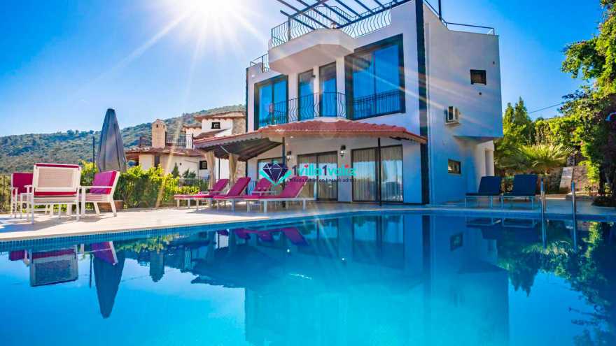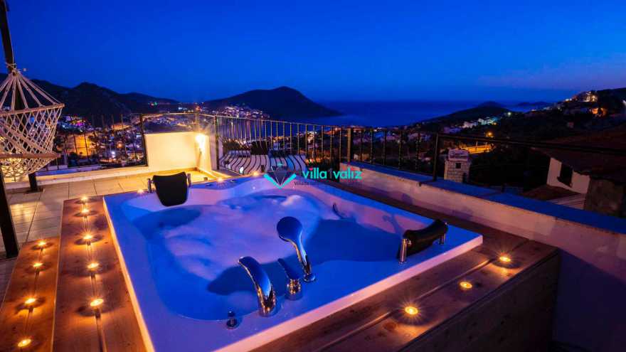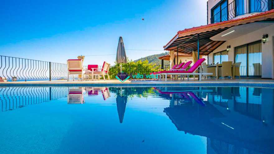 Villa Batum Kalkan’ın Merkez'inde yer alan deniz manzaralı 8 kişi kapasiteli havuz alanı korunaklı villalarımızdandır.8 kişi kapasiteli villamızın 4 yatak odası olup banyo ve tuvaletleri oda dışındadır.