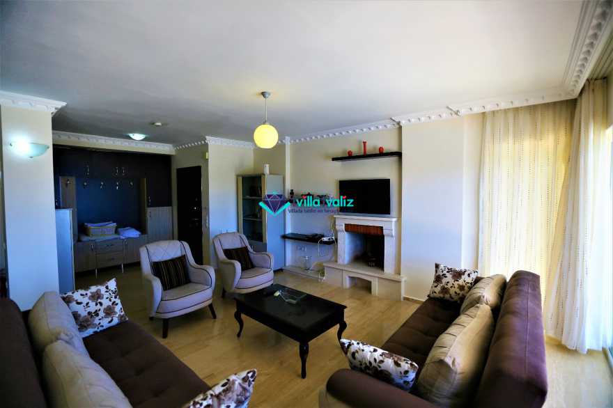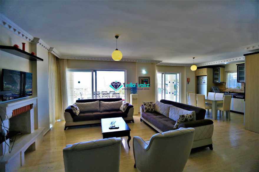 Salon: Geniş ve şık döşenmiş salon ve içersinde Oturma grubu, İnternet bağlantılı Led TV, DVD Player, Klima, 8 kişilik yemek masası, Havuz kenarına çıkış ve Banyo bulunmaktadır.