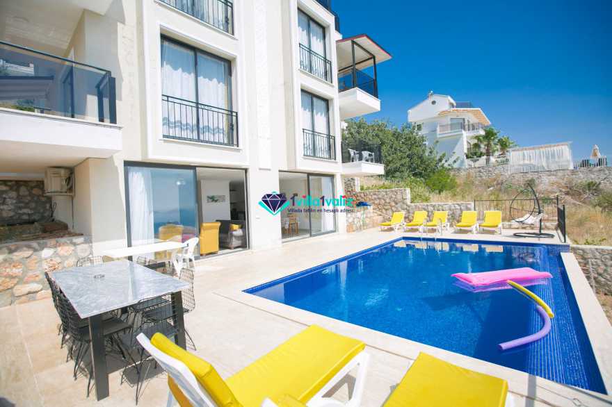 Kalkan Kızıltaş mevkisinde konumlanmıştır Villamız 5 yatak odalı 10 kişilik kapasiteye sahip olup geniş aileler için düşünülmüş full deniz manzaralı yazlık villalarımızdan birtanesidir. Villamızın son derece kaliteli eşyalarla donatılmış olup kaliteden ödün verilmemiştir.Özel yüzme havuzu ile birlıkte havuz terasında oturma alanı ve sandalye masa barbekü bulunmaktadır.