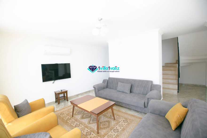 Salon: Villamızı salonunda oturma grubu, klima, yemek masası, uydu alıcı,tv ,ınternet bulunmaktadır.