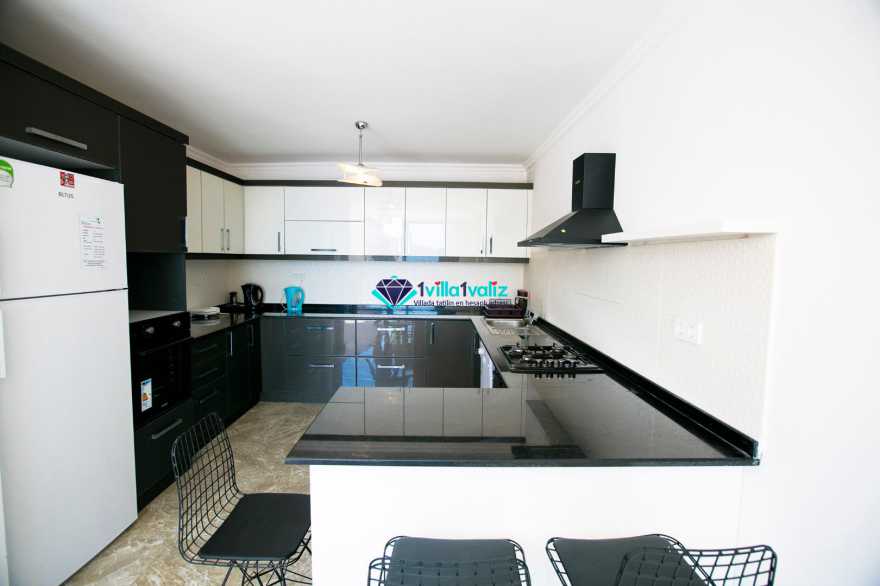 Mutfak: Villamız amerikan mutfagında bulasık makınası,buzdolabı,çamasır makınası,ekmek kızartma makınası, yemek takımı,tencere tava takımı,çatal bıcak takımı,ketıll, 4 lü ocak,mıkrodalga fırın bulunmaktadır.