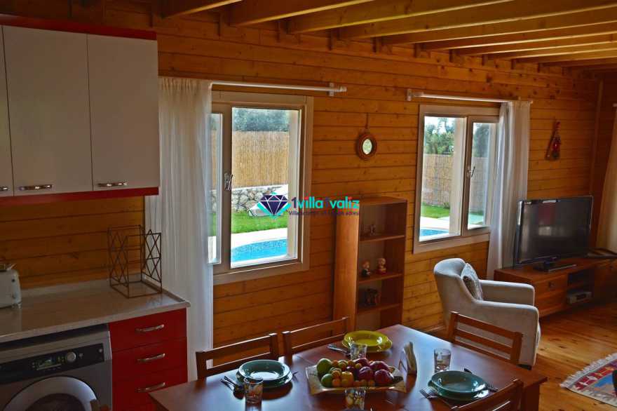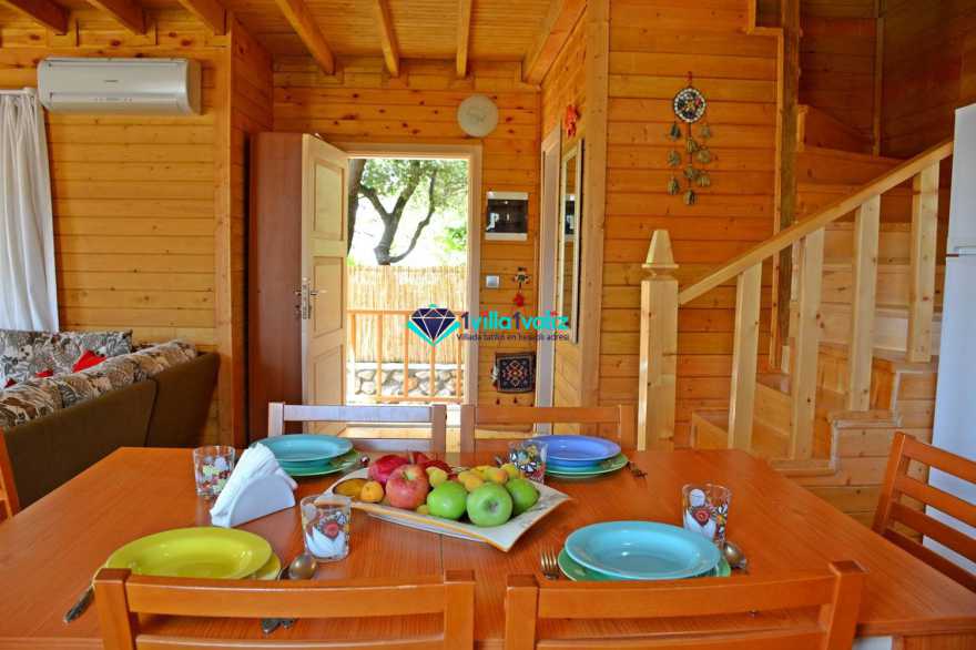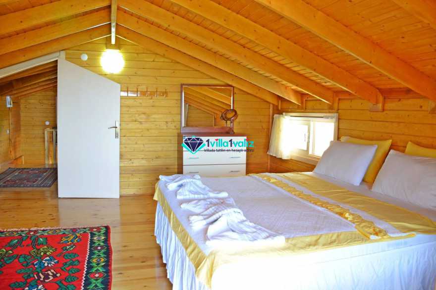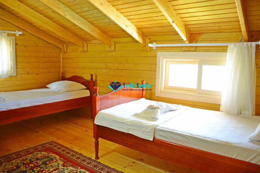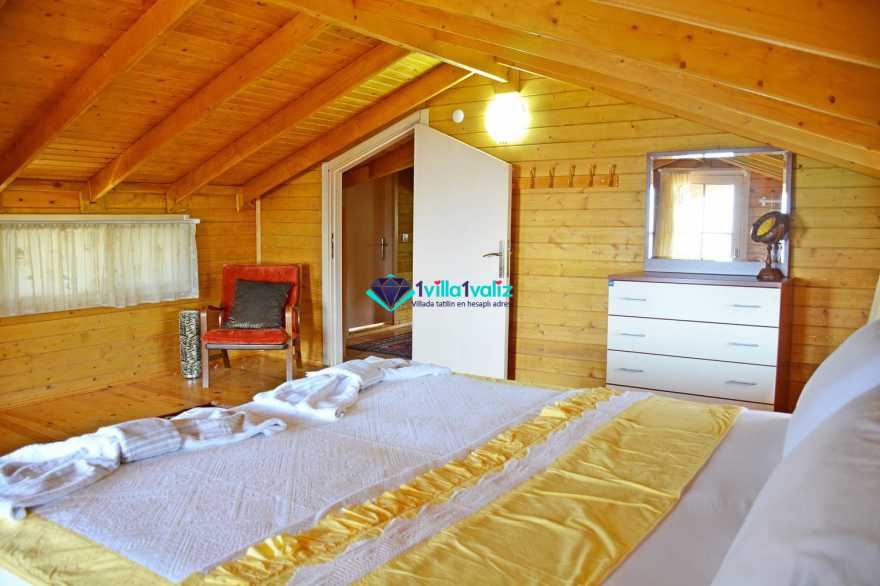 Villamızın içerisinde iki adet yatak odası ve iki adet banyo bulunmaktadır. Birinci yatak odası içerisinde çift kişilik yatak ve klima bulunmaktadır. İkinci yatak odası içerisinde iki adet tek kişilik yatak ve vantilatör bulunmaktadır. Alt katta ve üst katta birer tane olmak üzere toplamda iki adet ortak banyo bulunmaktadır. Ayrıca alt katta salon, mutfak, klima ve televizyon bulunmaktadır.
