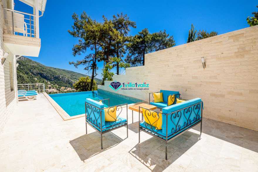 Kalkan İslamlar mevkiinde bulunan Villa Blanca; 2 yatak odası, 4 kişilik konaklama kapasitesine sahiptir. Şehrin gürültüsünden uzakta, eşsiz doğa ve deniz manzarasına sahip olan villamız, misafirlerine huzurlu bir tatil imkanı sunuyor. Villamızda kusursuz bir tatil geçirmeniz için tüm detaylar en ince ayrıntısına kadar düşünülmüştür. Havuzu korunaklı olan villamızı muhafazakar aileler ve balayı çiftleri rahatlıkla tercih edebilir.
