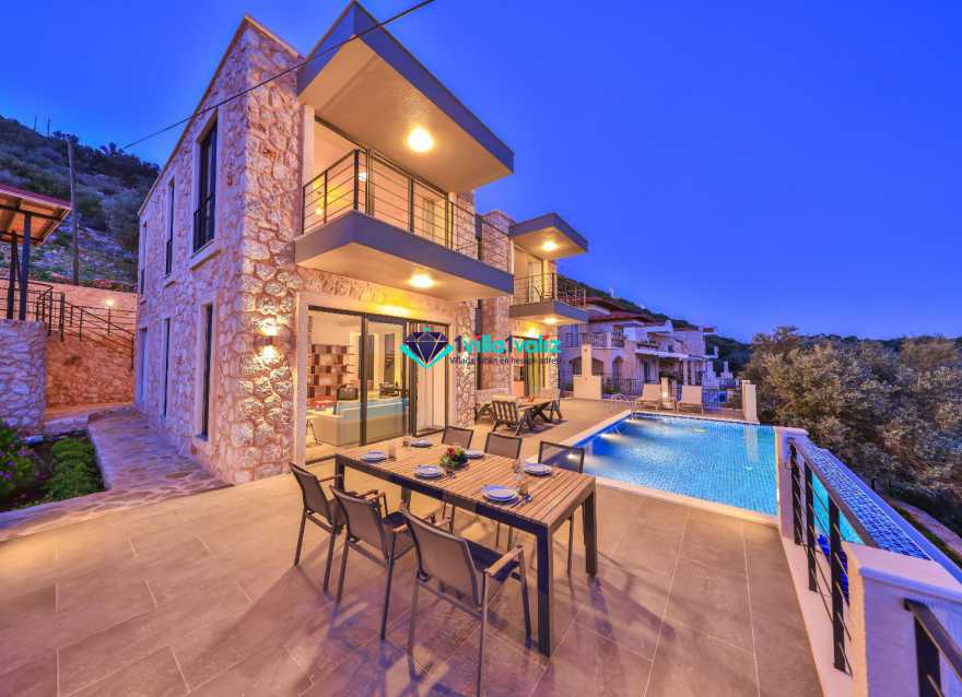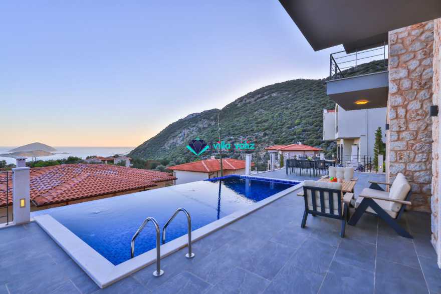 Kaş - Bayındır mevkiinde Ufukdere koyunda bulunan yazlık kiralık villamız Villa Blue Kaş; 3 yatak odalı 6 kişi konaklama kapasitelidir. Yapımı geçen yıl tamamlanan ve bu yıl ilk misafirlerini ağırlayacak olan ekonomik kiralık villamız; sizlere Kaş'ın muhteşem manzarası eşliğinde benzersiz bir tatil imkanı sunmaktadır. Deniz manzaralı kiralık villamızda tatil boyunca ihtiyaç duyabileceğiniz tüm temel eşyalar mevcut ve kullanımınıza hazır durumdadır. Sade ve şık tasarımı, aydınlık ve ferah odaları ile huzur dolu dakikalar geçireceğiniz villamızın tüm odalarında banyo ve tuvalet mevcuttur. Villa Blue Kaş; merkeze yaklaşık 10 km uzaklıkta, denize ise 6 km uzaklıkta bulunmaktadır.