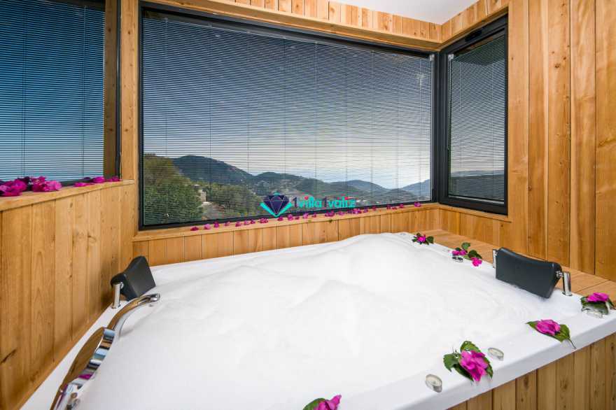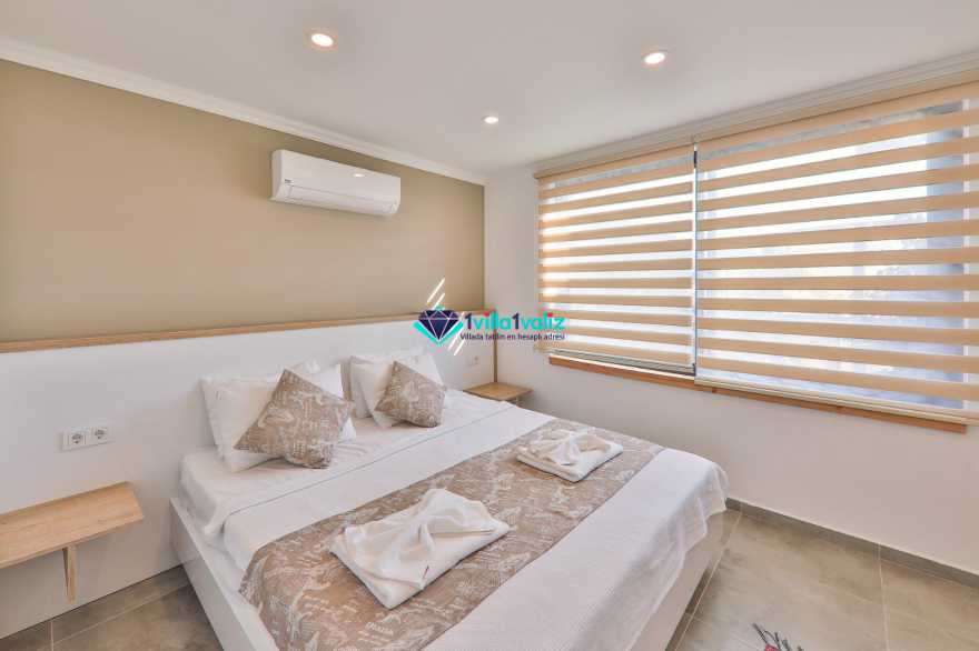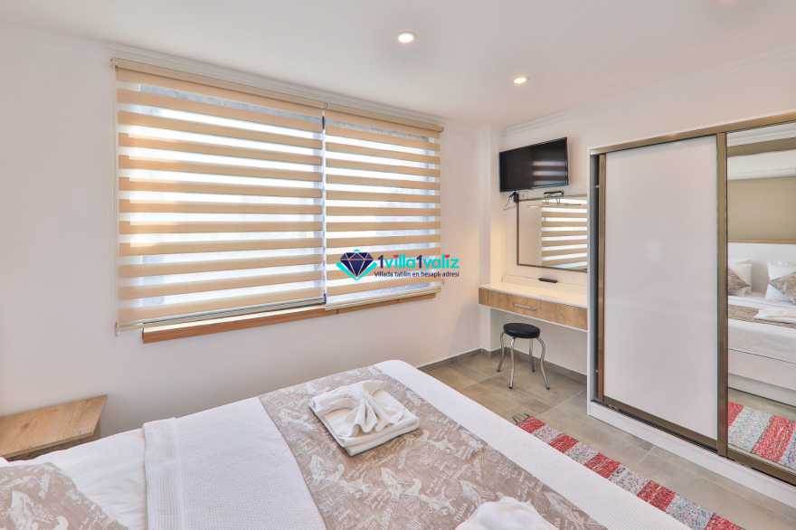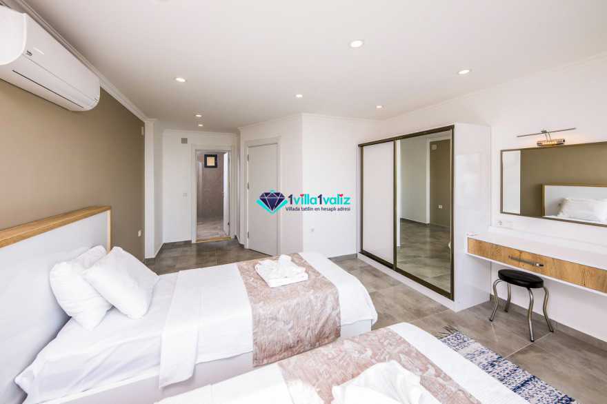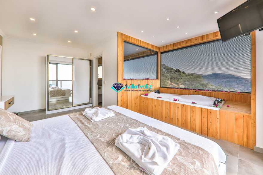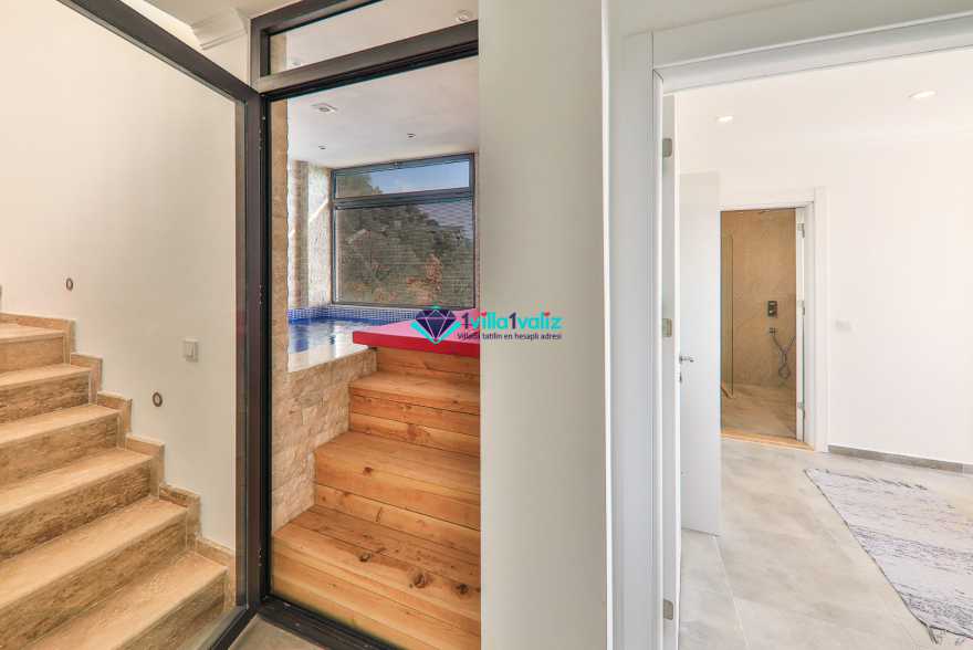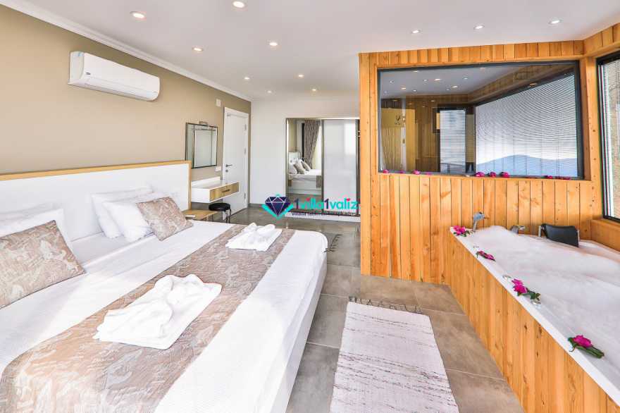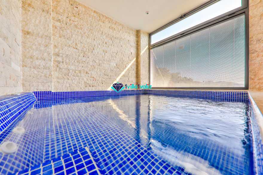 Açık ve kapalı havuzlu jakuzili 3 yatak odalı 6 kişilik lüks korunaklı kiralık villa
