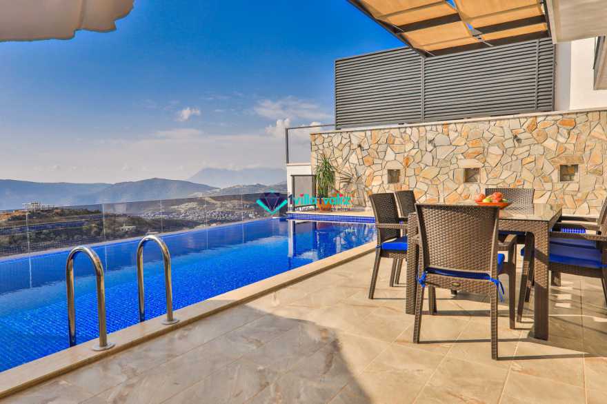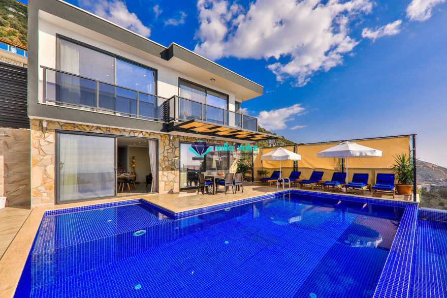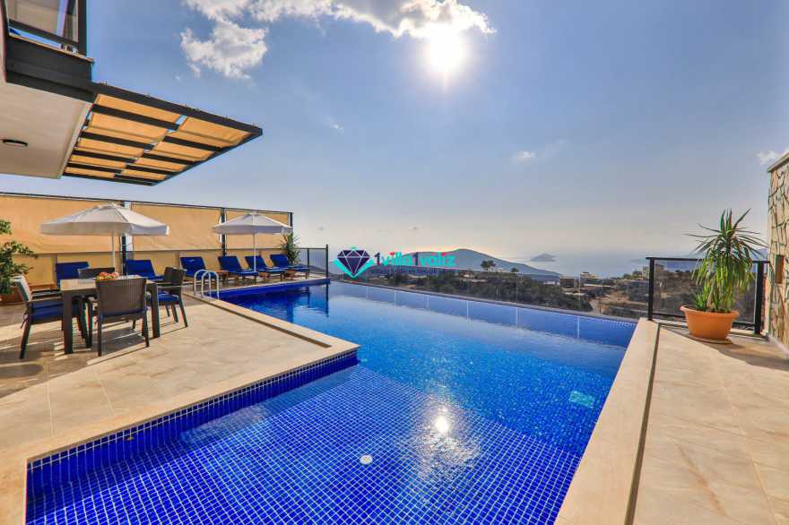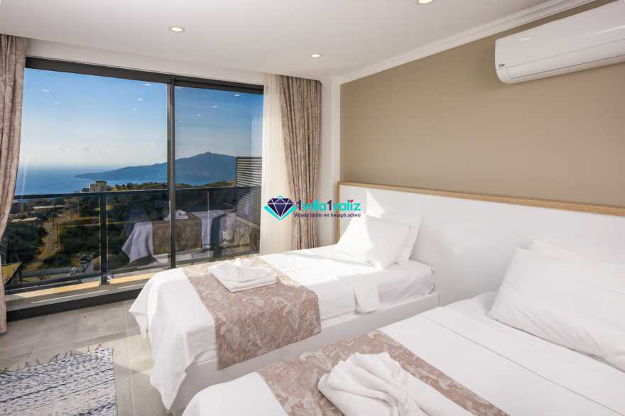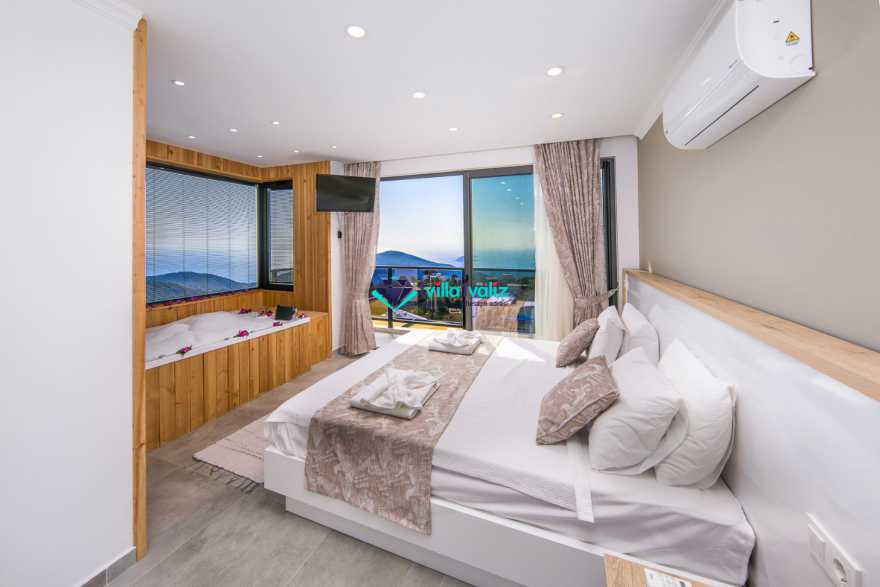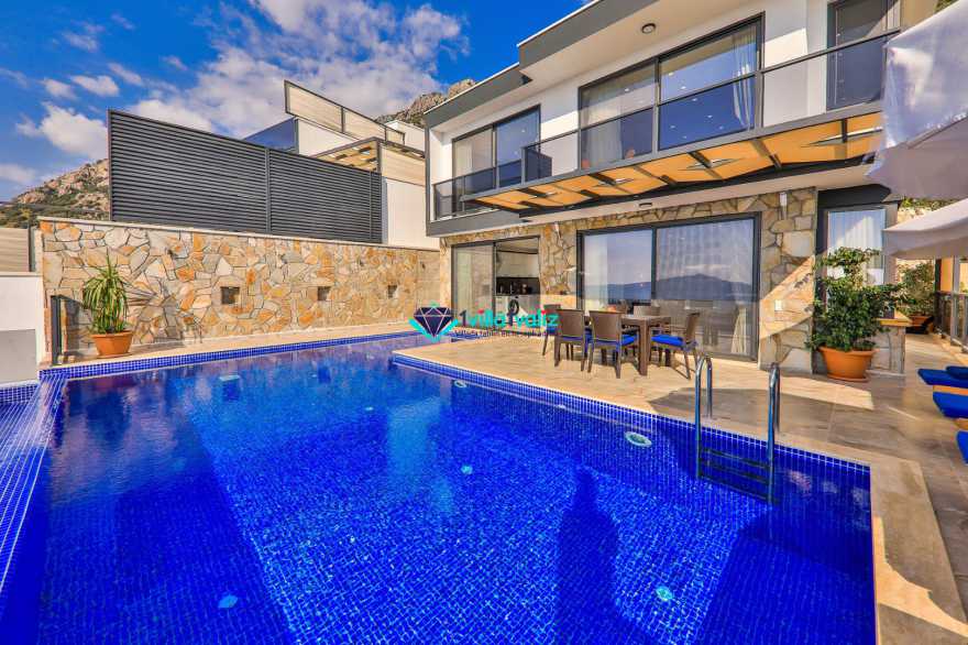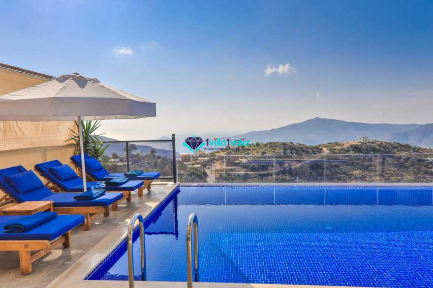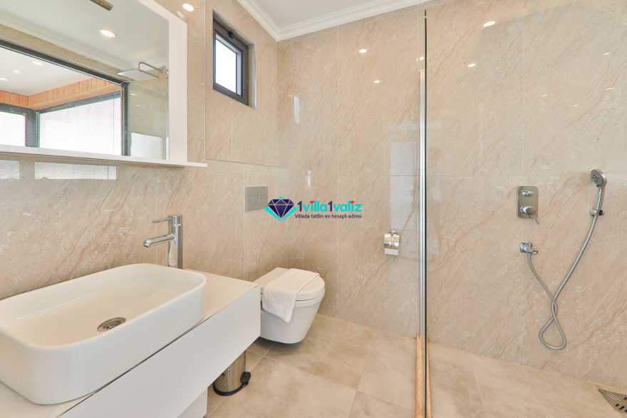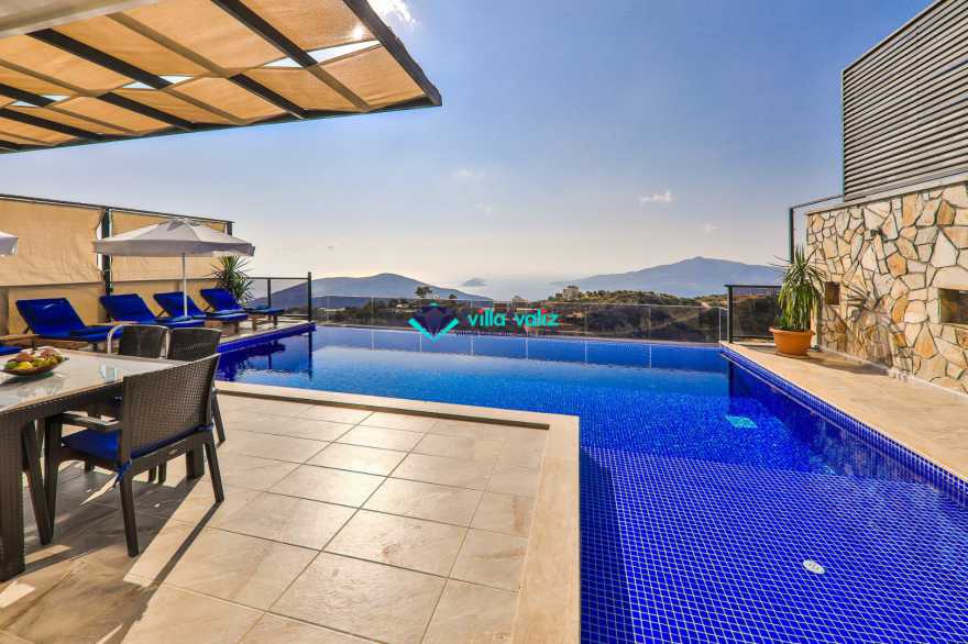 Açık ve kapalı havuzlu jakuzili 3 yatak odalı 6 kişilik lüks korunaklı kiralık villa