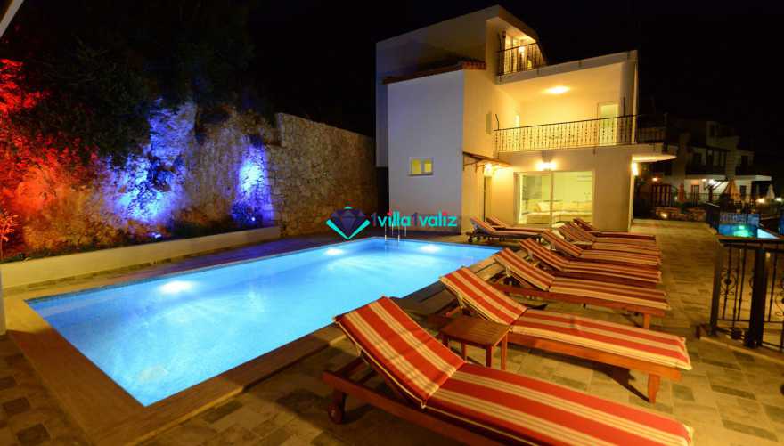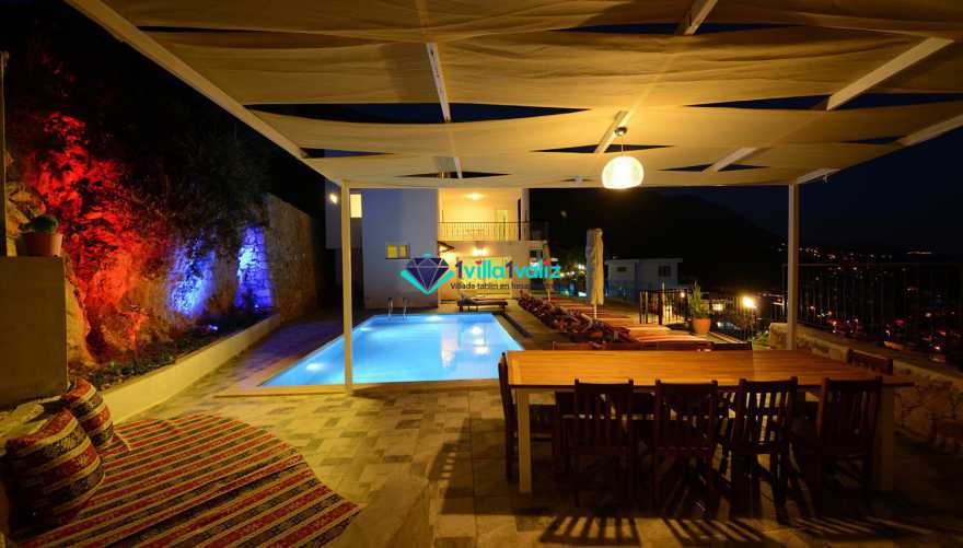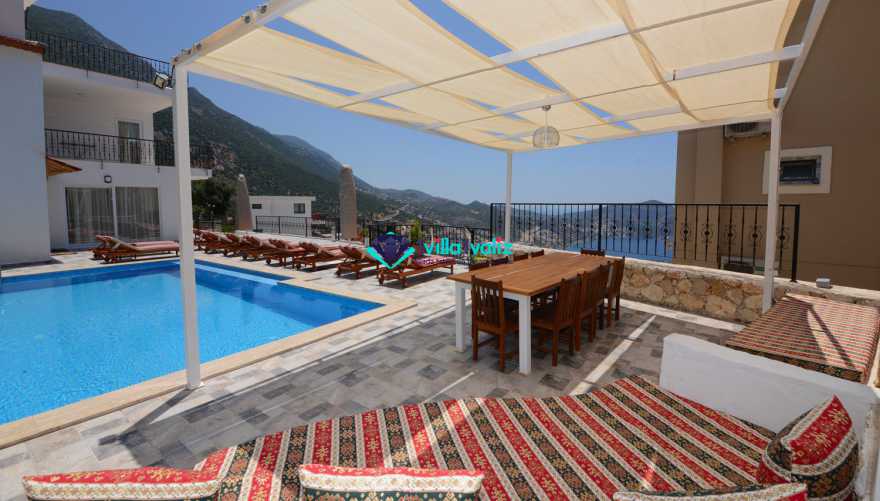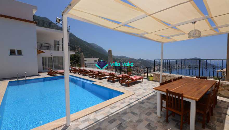 Kiralık tatil villamız, Kalkan mahallesinin Akbel mevkisinde konumlanmıştır. Harika deniz manzarasına sahiptir. Kalkan merkeze, 2 km mesafededir. Özel havuzlu tatil villamızın, havuz terası dışarıdan görünmeyecek şekilde kapatılmış, muhafazakar villa seçeneklerimiz arasındadır.