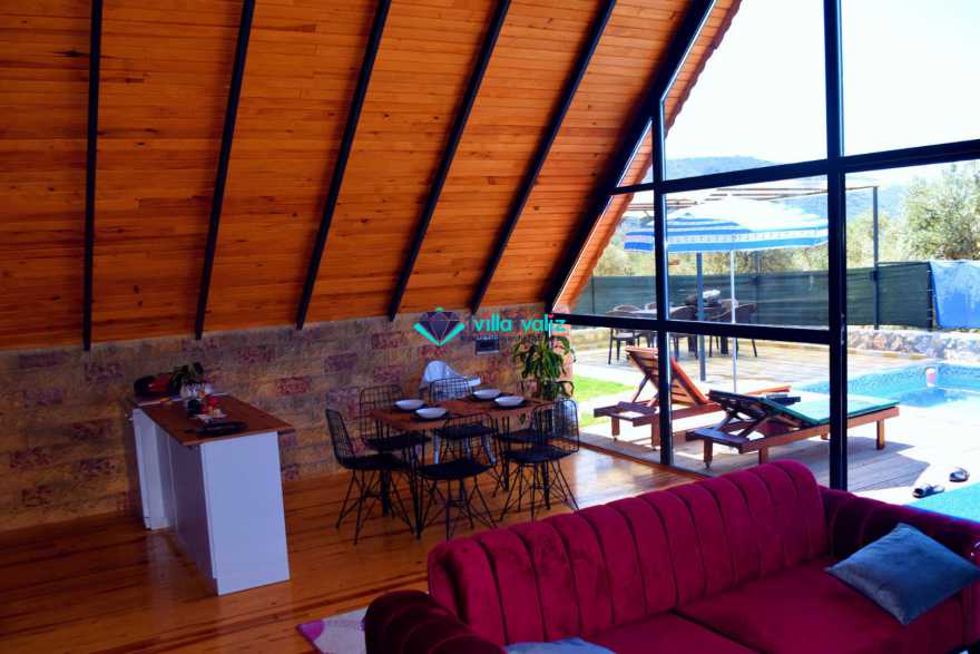 Kaş Kalkan Çayköy mevkinde konumlu Villa Bukre, 3 yatak odalı ve 6 kişiye kadar konaklama kapasiteli, bungalov tarzı özel havuzlu kiralık tatil villasıdır.