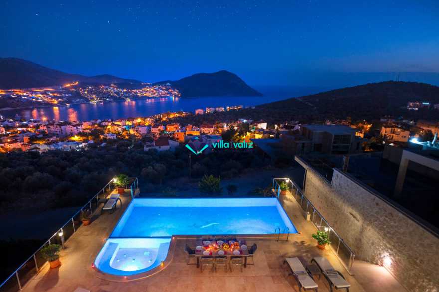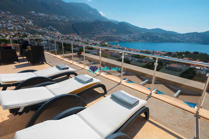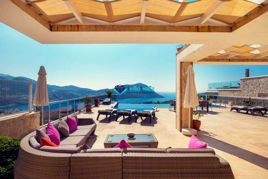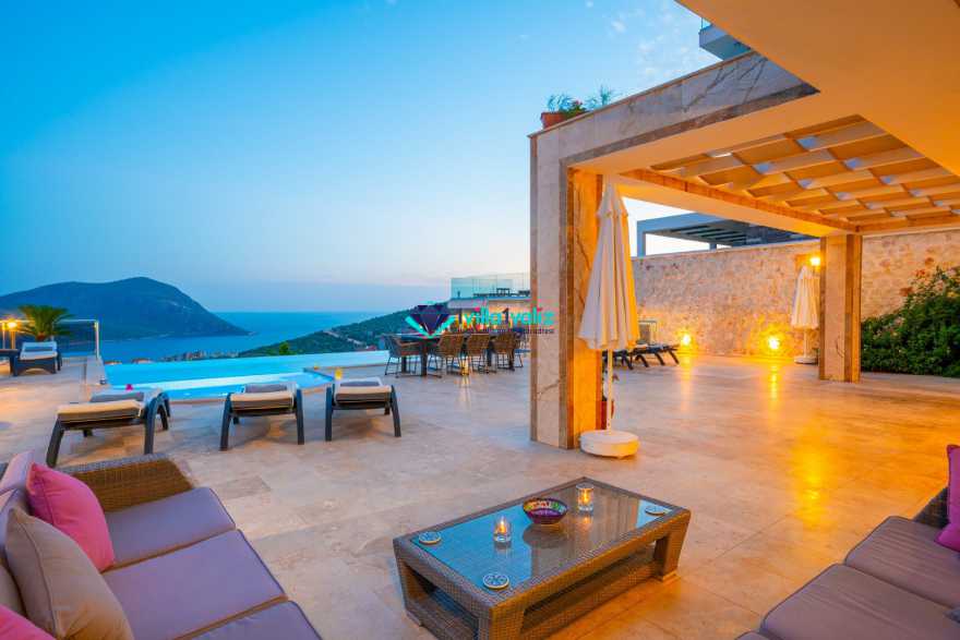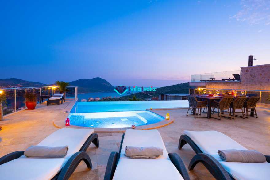 Villa Buse, Kalkan Orta alan mevkinde, muhteşem Kalkan ve adalar manzarasına sahip 5 yatak odalı 10 kişilik büyük aile ve arkadaş grupları için ideal bir villadır. Bahçede bulunan büyük havuzun yanı sıra çocuk havuzu da bulunmaktadır. İç ve dış mimari yapısının farklılığı, size unutulmaz bir tatil fırsatı sağlayacaktır.