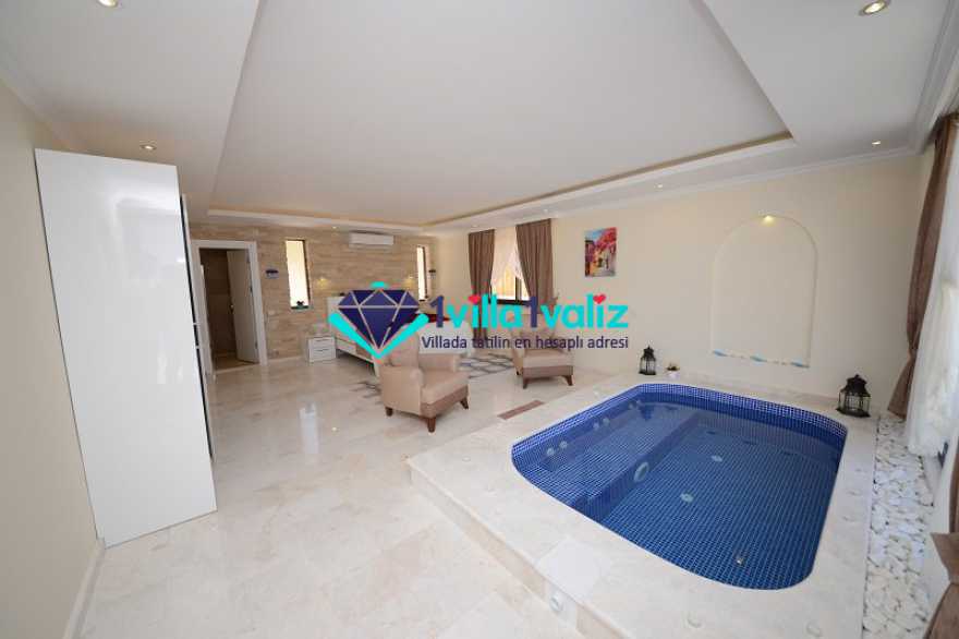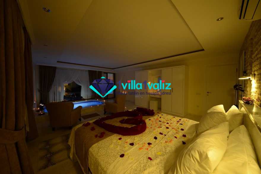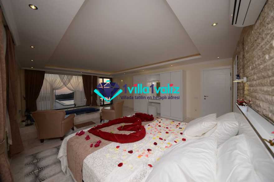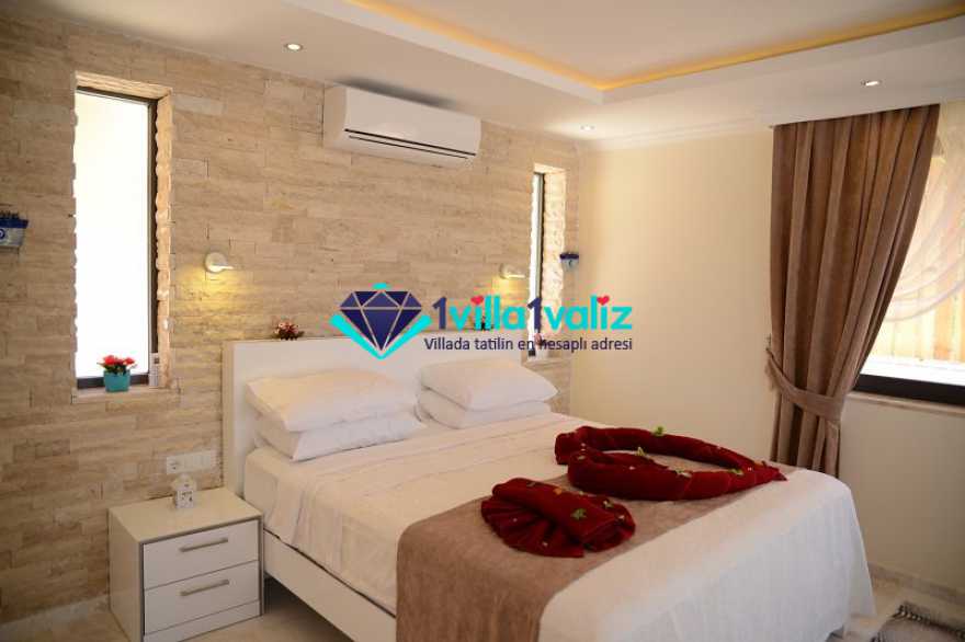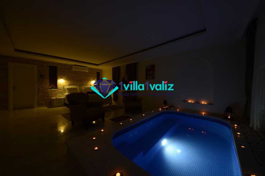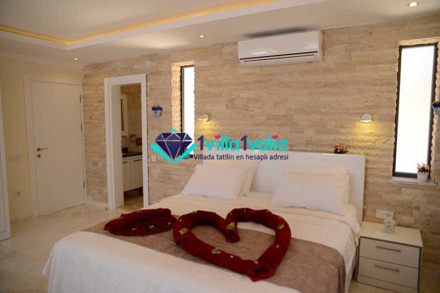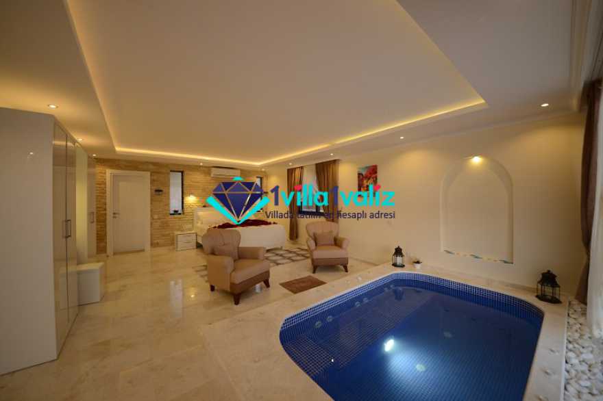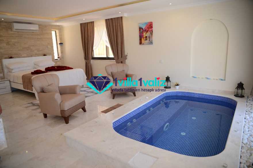 Villamızın içerisinde bir adet yatak odası ve bir adet banyo bulunmaktadır. Yatak odasının içerisinde çift kişilik yatak, klima, ebeveyn banyosu ve havuz bulunmaktadır.