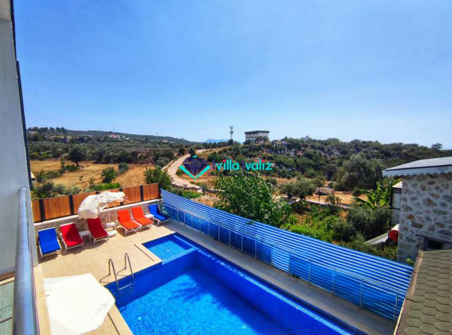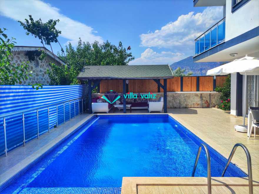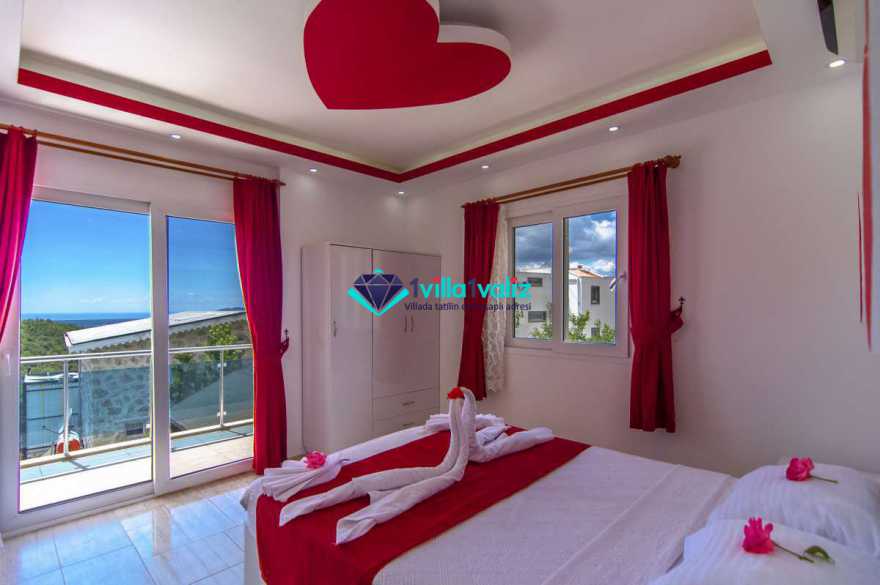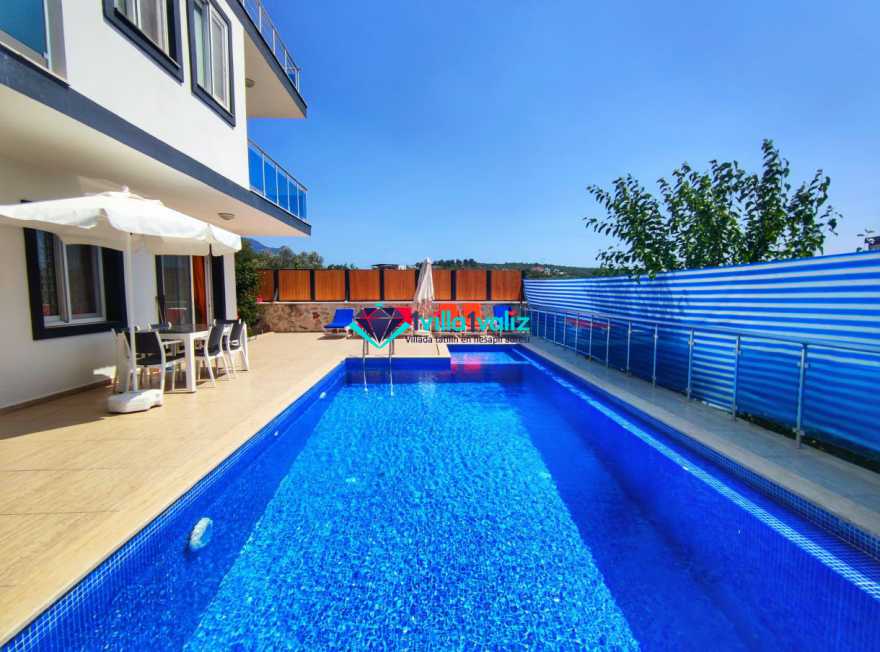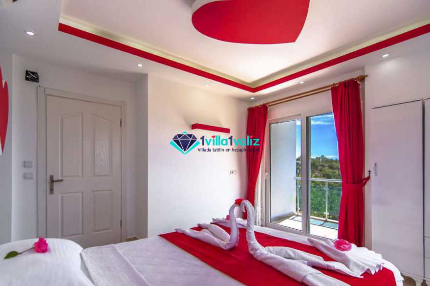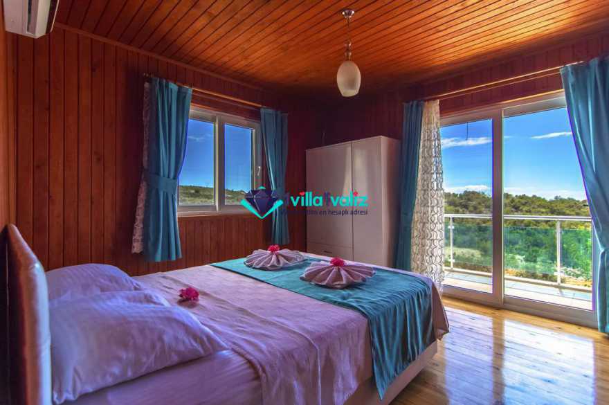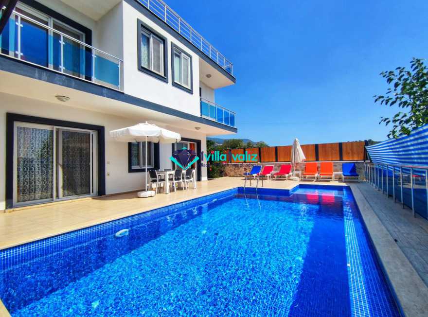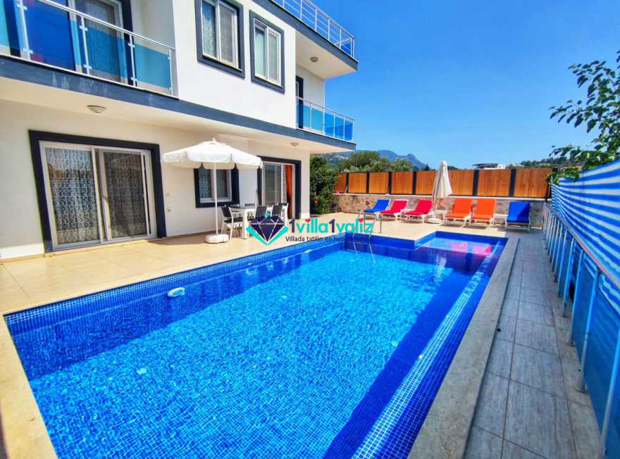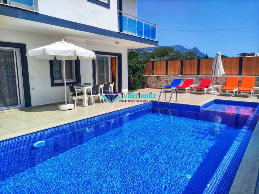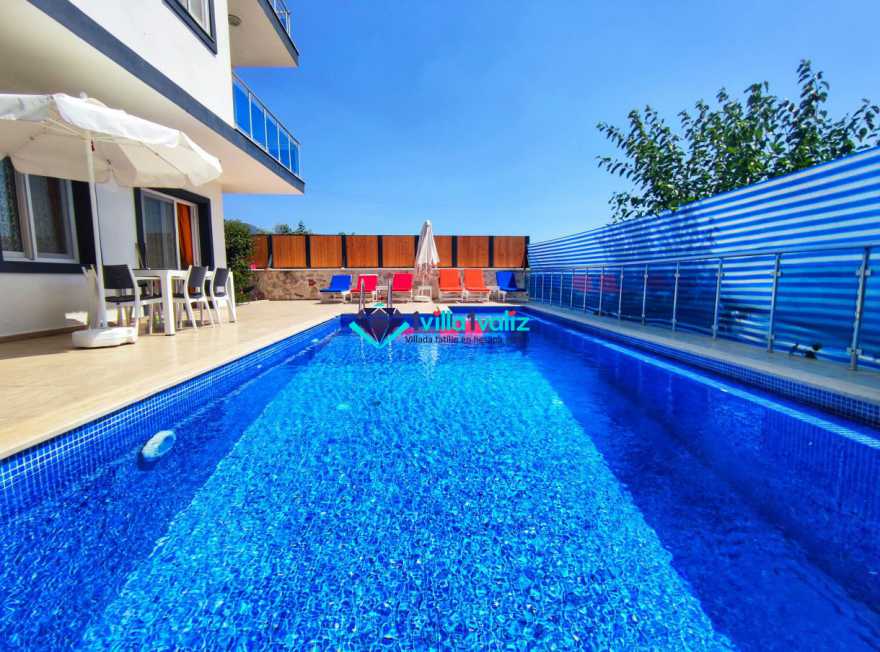 Villa Cemre Üzümlü; Kalkan Üzümlü köyünde konumlanmış villamız doğa ile iç içe bir ortamda bulunan bu lüks villamız 3 yatak odalı 6 kişiliktir.Kalkan Kiralık Villa'mızda özel otopark, geniş bahçe, muhteşem, doğa ve yeşillik manzarası vardır.Villaya ait olan özel yüzme havuzu korunaklı olup bahçenin dışından kesinlikle görünmemektedir. Villamızın geniş bahçesinin içerisinde birde çocuk havuzu da bulunmaktadır.1.Yatak odası : 1 adet çift kişilik yatak, elbise dolabı, saç kurutma makinası, klima, balkon, banyo ve tuvalet mevcuttur.2.Yatak odası : 2 adet tek kişilik yatak, elbise dolabı, saç kurutma makinası, klima, banyo ve tuvalet mevcuttur.3.Yatak odası: 1 adet çift kişilik yatak, elbise dolabı, saç kurutma makinası, klima, balkon, banyo, ve tuvalet mevcuttur.