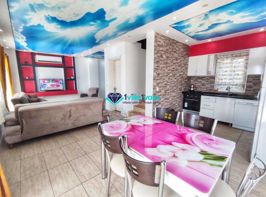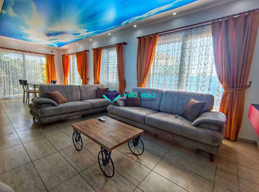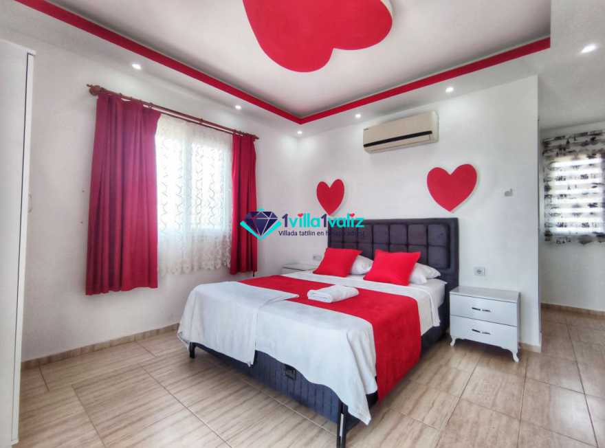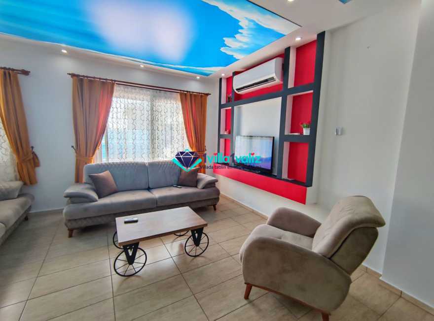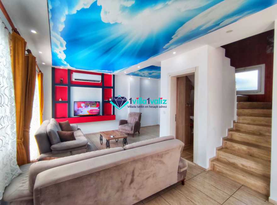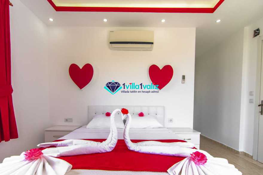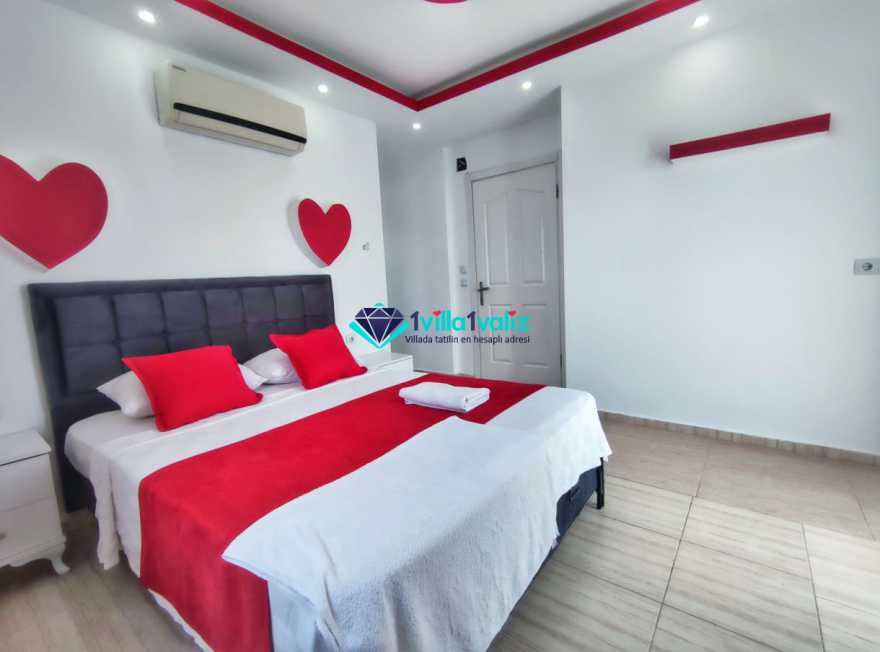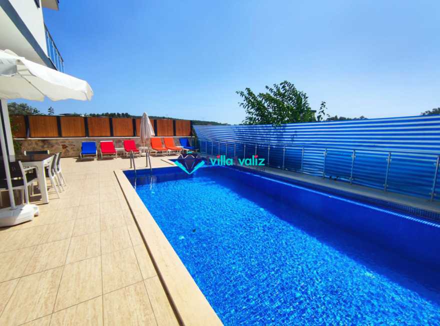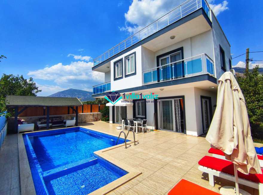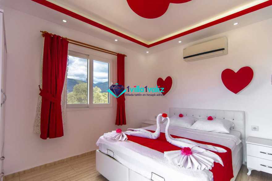 Villa Cemre Üzümlü; Kalkan Üzümlü köyünde konumlanmış villamız doğa ile iç içe bir ortamda bulunan bu lüks villamız 3 yatak odalı 6 kişiliktir.Kalkan Kiralık Villa'mızda özel otopark, geniş bahçe, muhteşem, doğa ve yeşillik manzarası vardır.Villaya ait olan özel yüzme havuzu korunaklı olup bahçenin dışından kesinlikle görünmemektedir. Villamızın geniş bahçesinin içerisinde birde çocuk havuzu da bulunmaktadır.1.Yatak odası : 1 adet çift kişilik yatak, elbise dolabı, saç kurutma makinası, klima, balkon, banyo ve tuvalet mevcuttur.2.Yatak odası : 2 adet tek kişilik yatak, elbise dolabı, saç kurutma makinası, klima, banyo ve tuvalet mevcuttur.3.Yatak odası: 1 adet çift kişilik yatak, elbise dolabı, saç kurutma makinası, klima, balkon, banyo, ve tuvalet mevcuttur.