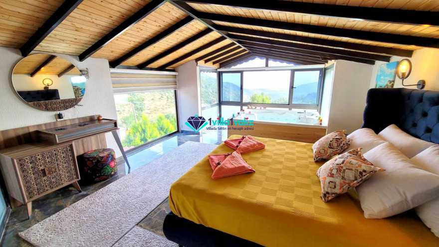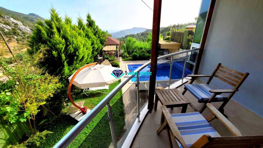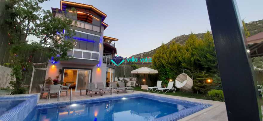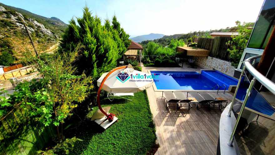 Yaz tatilini Villa Dere’de yapmak isterseniz villamız Kalkan İslamlar bölgesinde bulunmaktadır. Villamızda 3 tane yatak odası bulunmaktadır. Kapasitesi 6 kişi olan villamız şık mimari tasarımı ile sizlere mükemmel tatil imkânı sağlar. Villa Dere’nin 3 tane banyosu vardır. Her oda da ebeveyn banyosu ulunmaktadır. Havuzun olduğu terasın etrafı çevrilidir ve dışarıdan görünmemektedir. Bu yüzden villamız çoğunlukla muhafazakâr kişiler ve yeni balayı çiftleri tarafından daha çok tercih edilmektedir. Villa Dere’de sizi ayrıca doğa ile iç içe temiz hava, büyüleyici orman ve deniz manzarası ile sizleri harika bir tatil bekliyor. Akşam batarken teras da gün batımını ayaklarınızın altındaki nefes kesen manzara ile izlerken sevdiklerinizle ve ailenizle sohbet etmenin vereceği keyif ve huzur tatilinizi özel kılacaktır. Villamıza market ve restorana yürüme mesafesinde merkeze ve plaja ise 10 dakika araç mesafesindedir. Sizde sevdiklerinizle unutulmaz anılar biriktirmek ve keyifli zamanlar geçirmek için Villa Dere’ye bekleriz.