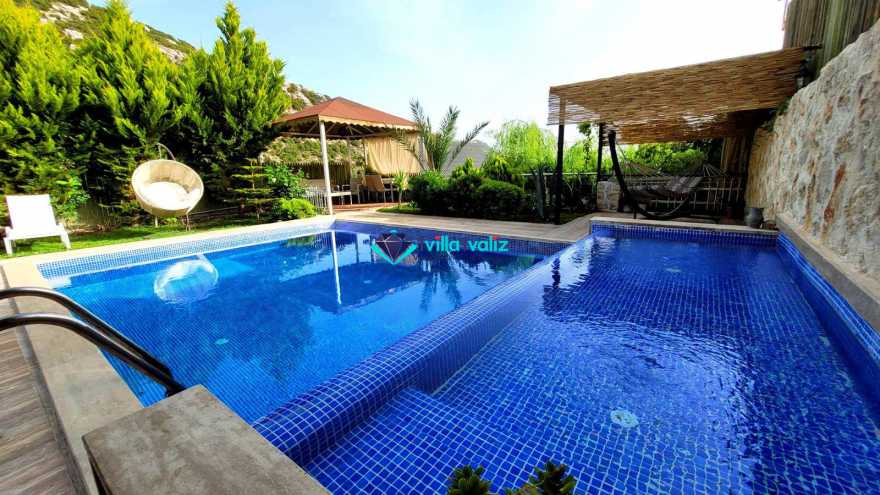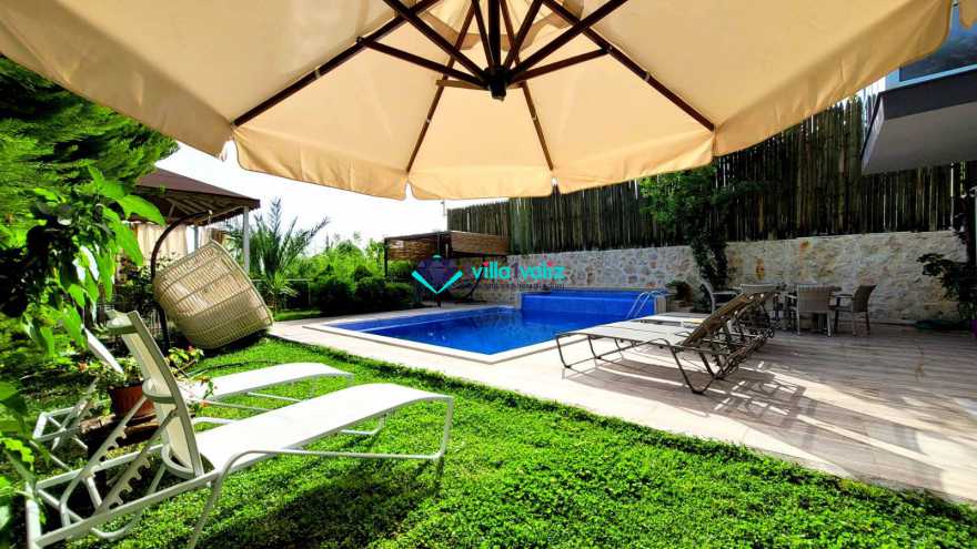 Villamızın havuzu ise etrafı dışarıdan görülmeyecek şekilde korunaklı olup sizlere huzurlu ve keyifli havuz deneyimi sunmaktadır. Size özel muhafazakâr yüzme havuzu, şezlong keyfi ve şemsiye ile yazın en güzel günlerinde sizleri bekliyor.