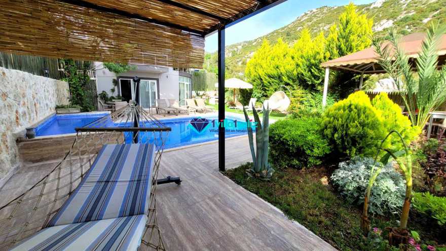 Villamızın bahçesinde özel yüzme havuzu, güneşlenmeniz için 6 adet şezlong, güneşlenme terası, 6 kişilik masa, oturma grubu, hamak, oturma köşesi, mangal keyfiniz için barbekü, güneş şemsiyesi bulunmaktadır.