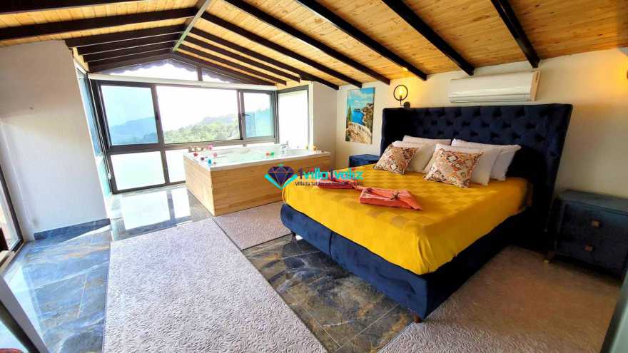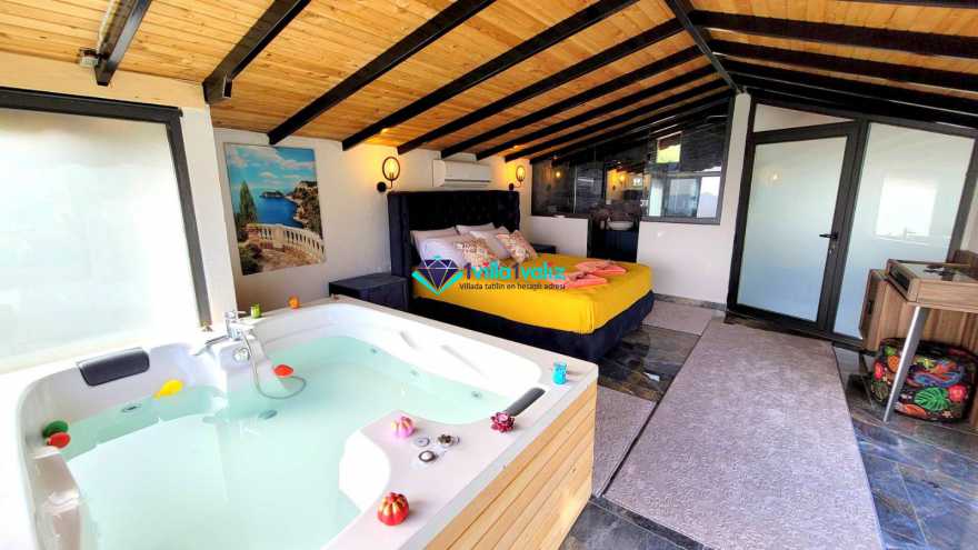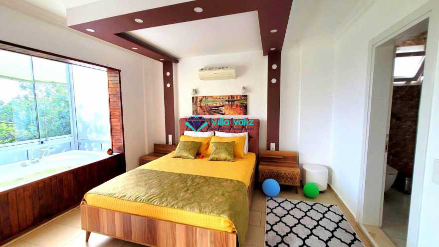 1. Yatak Odası: 1 adet çift kişilik yatak, klima,komodin, elbise dolabı, makyaj masası, jakuzi, balkon, banyo ve tuvalet bulunmaktadır.