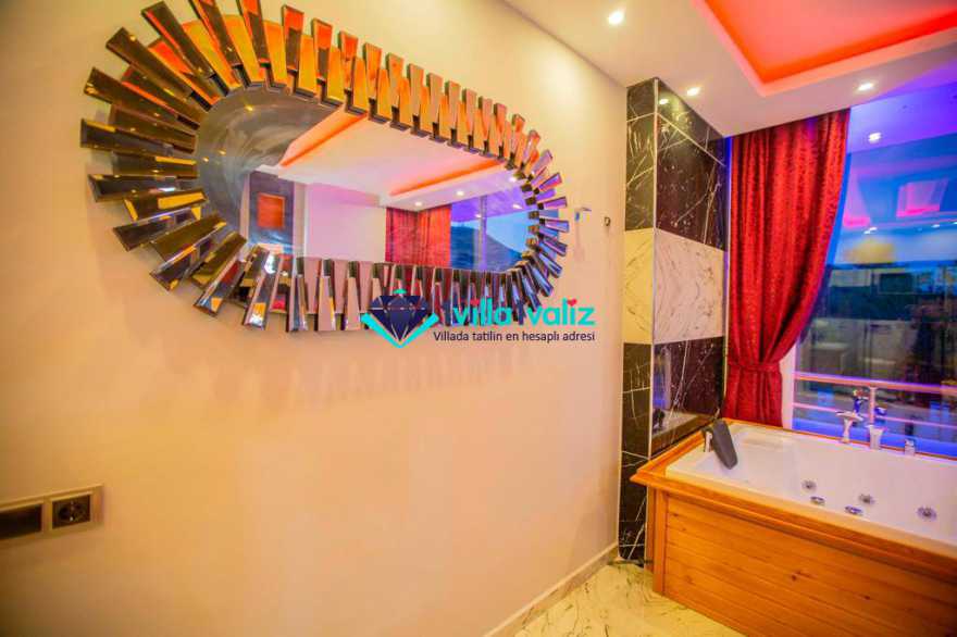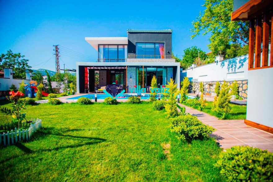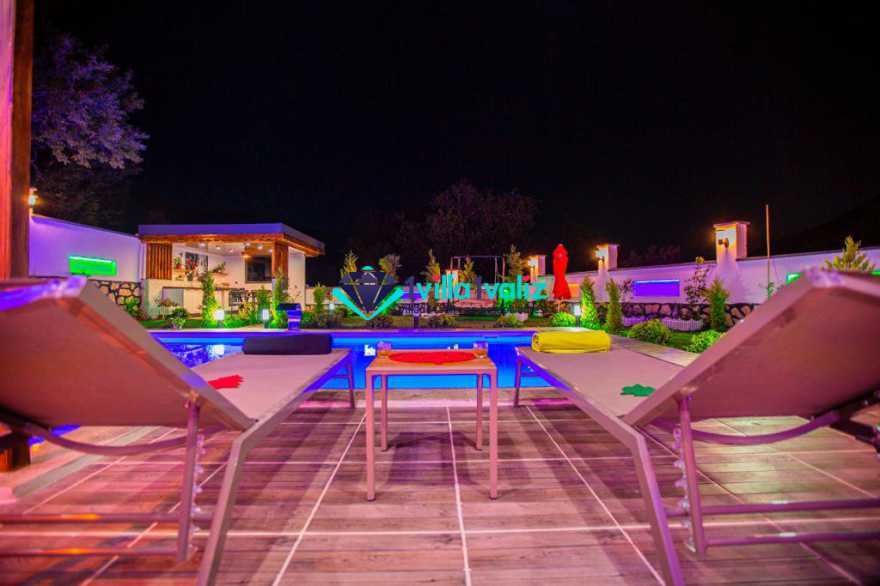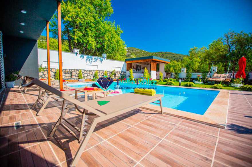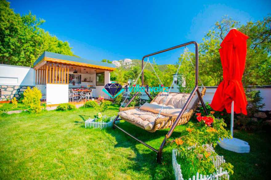 Kalkan Sarıbelen mevkisinde konumlanan Villa Desen, 5 kişi konaklama kapasitesine sahip geniş bahçe alanlı konforlu bir tatil villası seçeneğidir. Şık mobilya ve aksesuarlarla döşenmiş olan villamız Kalkan merkeze araç ile 15 dakikalık sürüş mesafesinde olup, 2 adet jakuzili suit yatak odası bulunmaktadır.