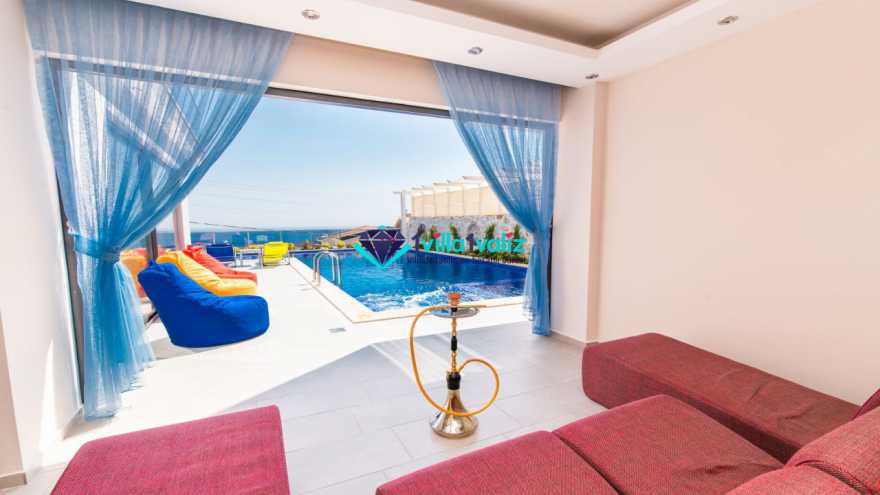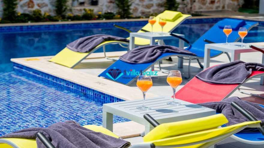 Villa Edam, dünyaca ünlü Kalkan’ın Akbel mevkiinde konumlanmış 3 yatak odalı, iki katlı modern tarzda inşa edilmiş muhafazakar konseptte bir tatil villasıdır. 6 kişiye kadar konaklama kapasitesine sahip olan villamız odalarından ve salondan görülebilen muhteşem deniz ve enfes doğa manzarasına hakimdir. Açık mutfaklı salonda; oturma grubu, 6 kişilik yemek masası, televizyon, uydu alıcı yer alır. Ebeveyn yatak odasında jakuzi bulunmaktadır. Özel yüzme havuzlu olup havuzu dışarıdan görünmez. Balayı çiftleri, çekirdek aileler ve yabancı gözlerden uzakta tatillerini geçirmek isteyen herkes için oldukça ideal bir yazlık villadır. Havuz başında; havuzu korunaklı yüzme havuzu, masa ve sandalyeler, mangal, güneş şemsiyeleri ve şezlonglar bulunmaktadır. Villada misafirlerin sıkılmadan vakit geçirebilmesi için sinema odası, sauna, masa tenisi ve langırt bulunmaktadır. Villa Edam Kalkan Merkeze sadece 1.5 km mesafededir.