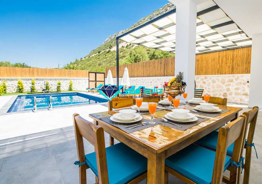 Villa Efdal, Bezirgan Köyünde bulunan yeşilliklerin içerisinde doğayla iç içe bir villamızdır. 6 kişi kapasiteli 3 yatak odalı, jakuzili villamız doğanın içinde sessizliğin, huzurun buluştuğu eşsiz korunaklı ve doğal bir konuma sahiptir. Her alanı modern ve özenle dekore edilen villamızda ihtiyacınız olan her şey mevcuttur. Özel yüzme havuzuna sahip villamızın havuz ve bahçe alanı korunaklı olup dışardan görünmeyecek şekilde tasarlanmıştır. Havuza girip serinledikten sonra bahçesinde bulunan masa tenisiyle de keyifli maçlar yapabilirsiniz. Geniş aileler ve arkadaş grupları için ideal olan villamız bu yönü ile hem gözlerden uzak hem de konumu itibariyle şehir kalabalığından uzak keyifli, huzurlu bir tatil geçirme imkanını sunmaktadır.