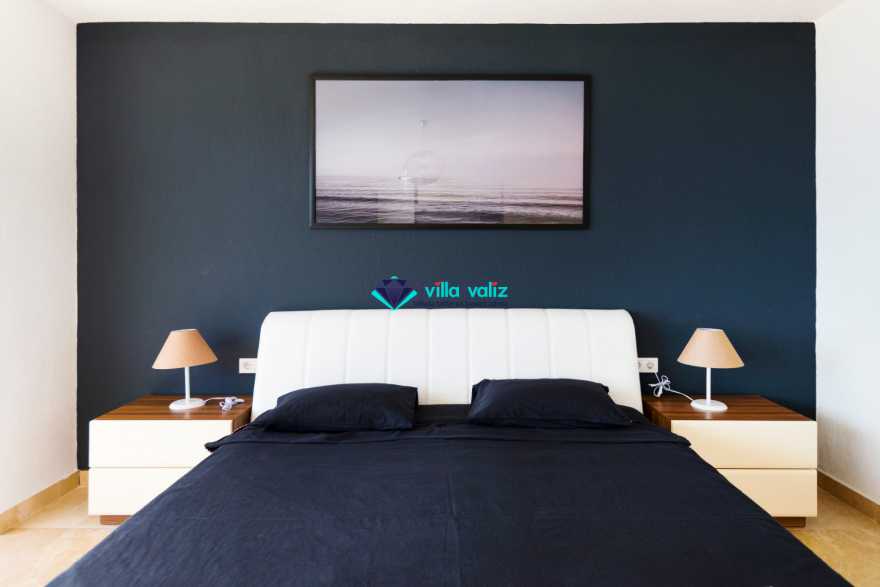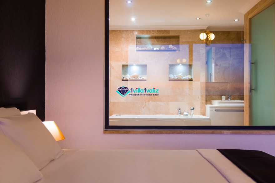 1. Yatak Odası: Yatak odasında 1 adet çift kişilik yatak, makyaj masası, elbise dolabı, jakuzi, banyo, tuvalet balkon bulunmaktadır. Deniz manzaralı balkonda oturma grubu yer almaktadır.