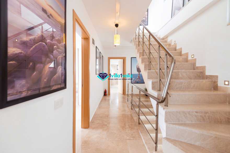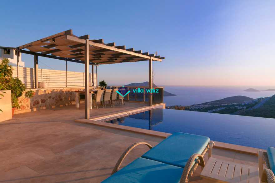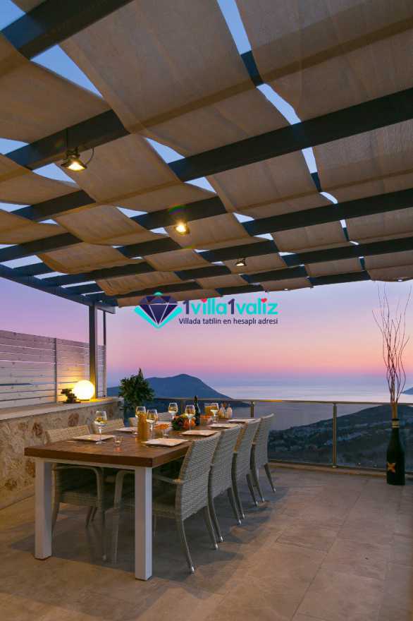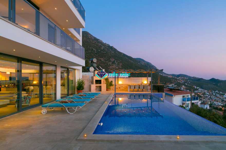 Villa Ela, Kalkan Akbel mevkinde bulunan, 6 yatak odalı 12 kişi kapasiteli villamızdır. Tüm odaları Kalkan'ın eşsiz manzarasına sahiptir. Büyük aile ve arkadaş grupları için ideal olan villamız unutulmaz bir tatil fırsatı sağlayacaktır. Konforlu ve modern döşenmiş villamızın, terasında oturma grubu ve bar bulunmaktadır. Ayrıca, havuz alanında bulunan bahçe kısmında da masa tenisi mevcuttur.