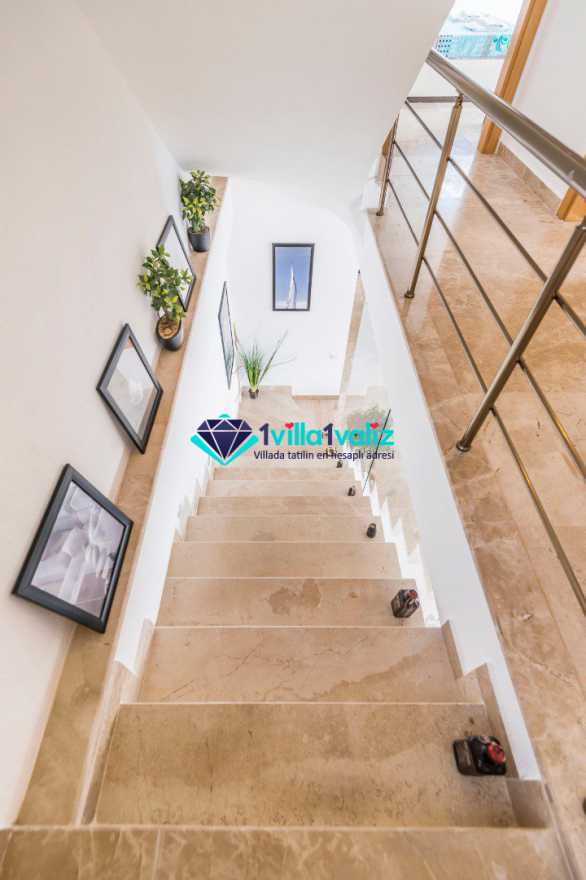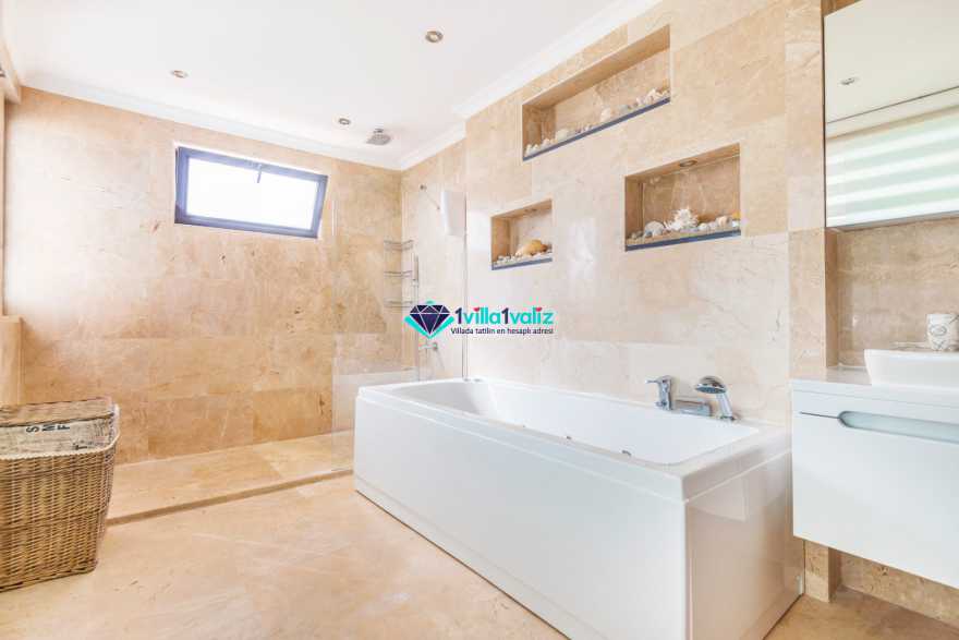 Villamız özel bahçesinde özel yüzme havuzu, güneşlenme terası, şezlong, güneş şemsiyesi, bahçe masası ve sandalyeler, taş barbekü, çardak, duş ve tenis masası bulunmaktadır.
