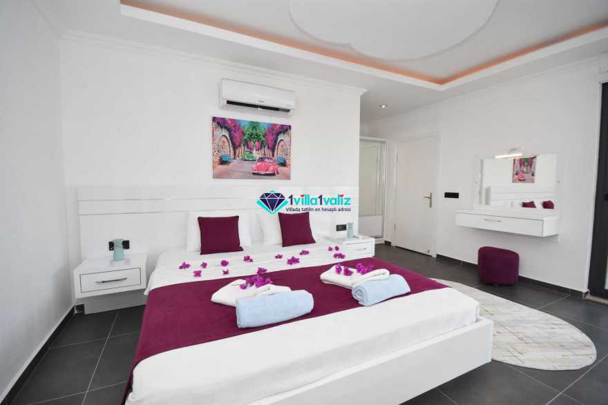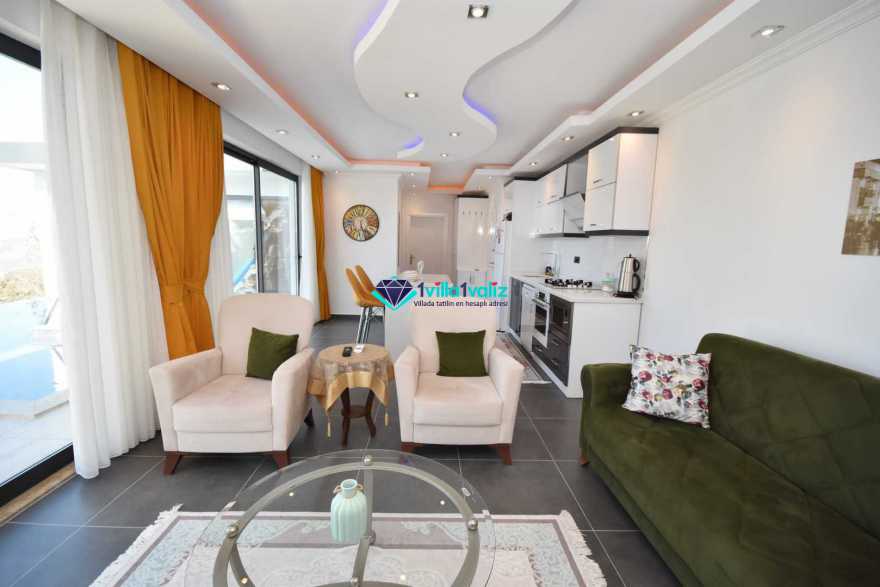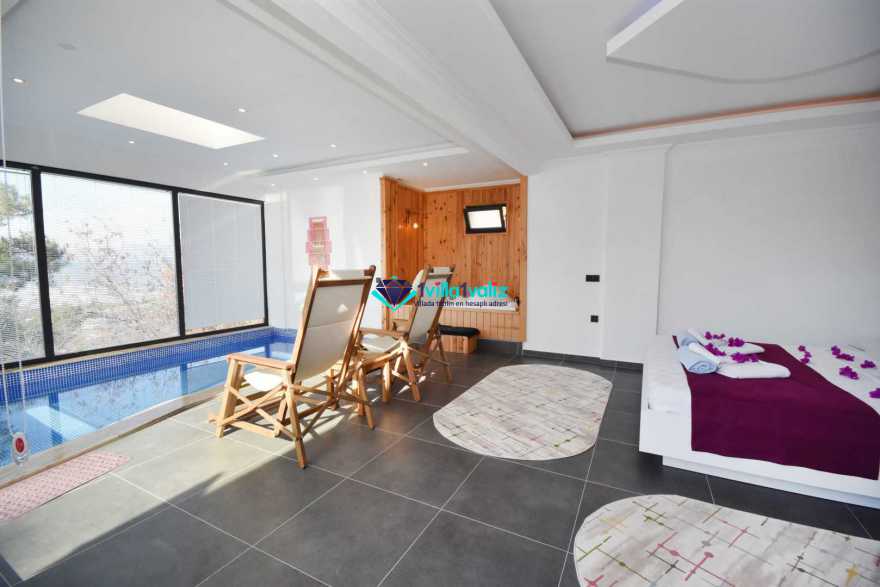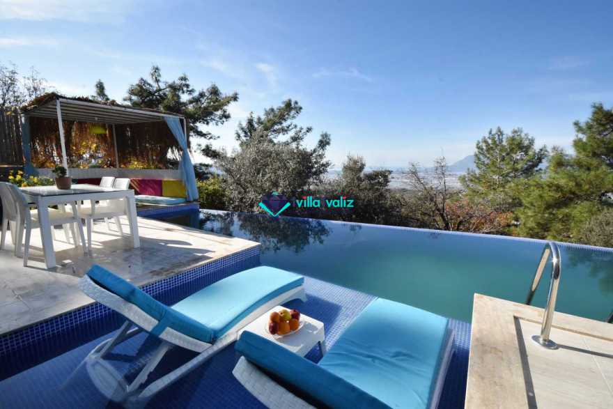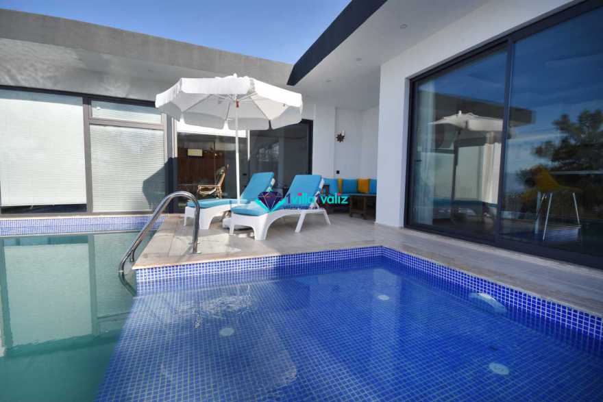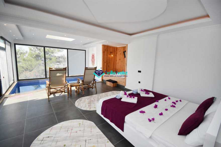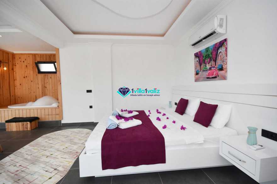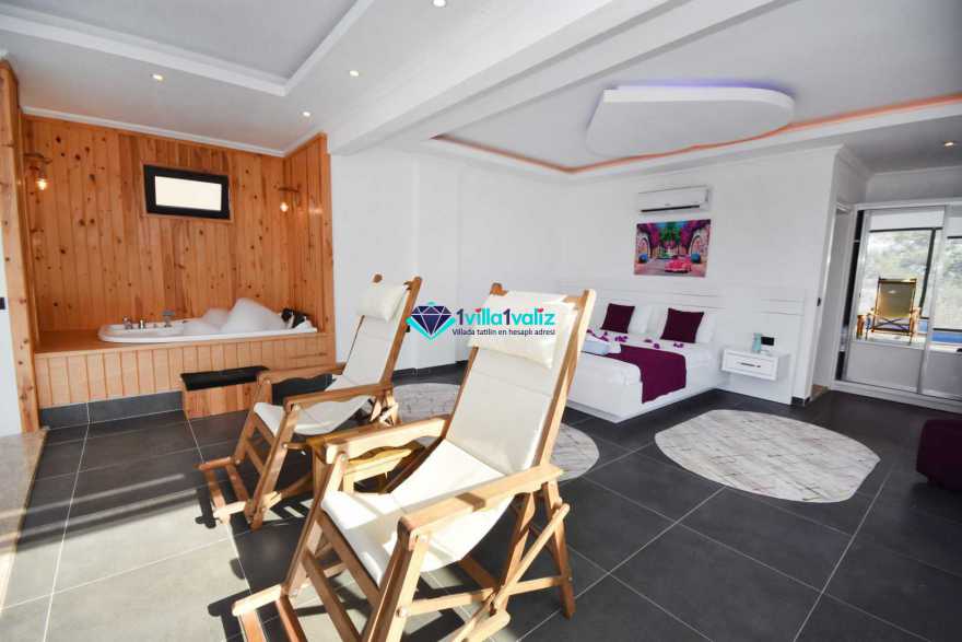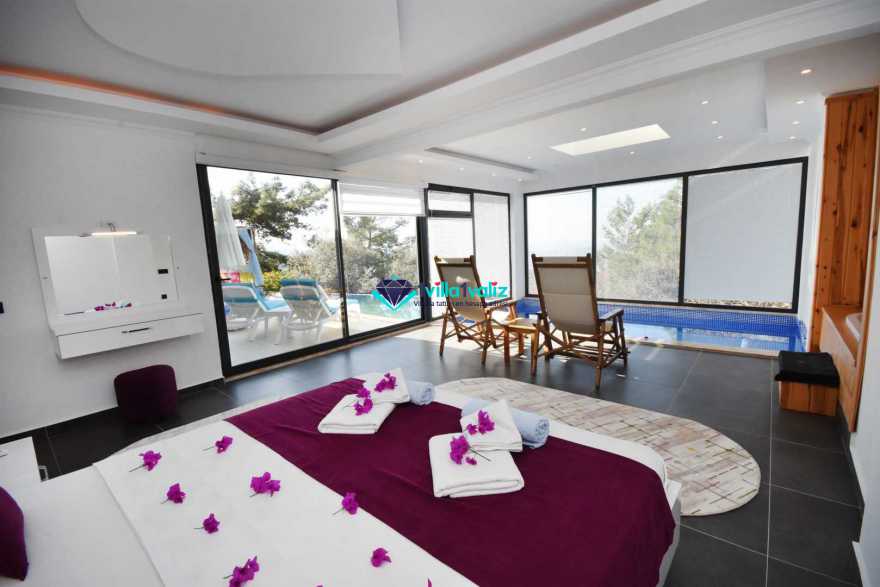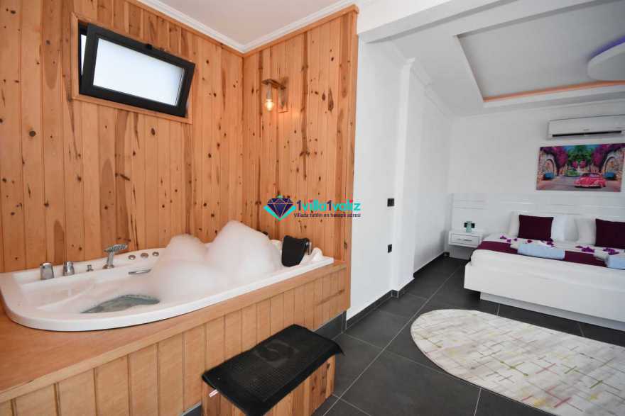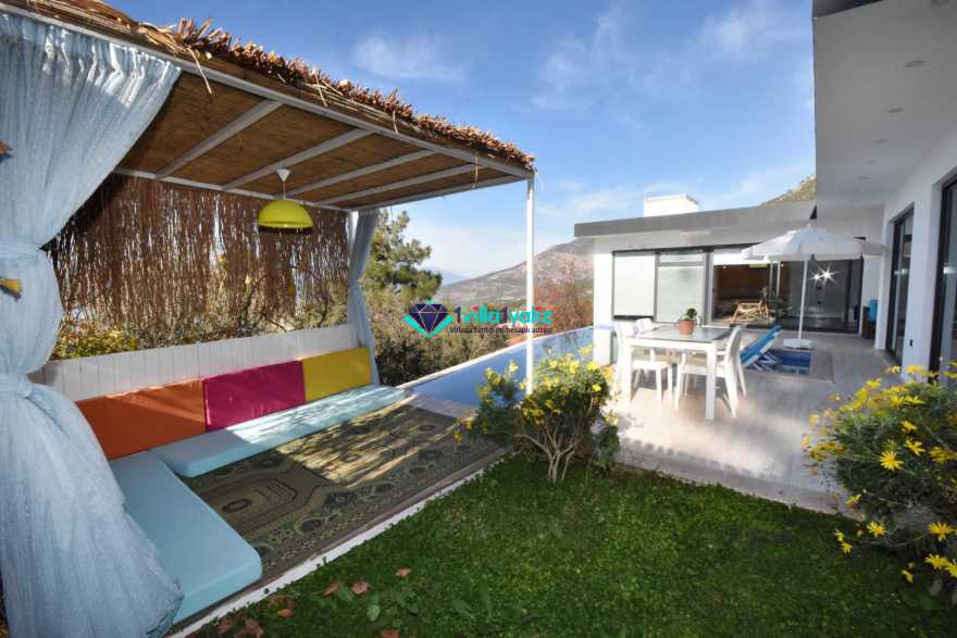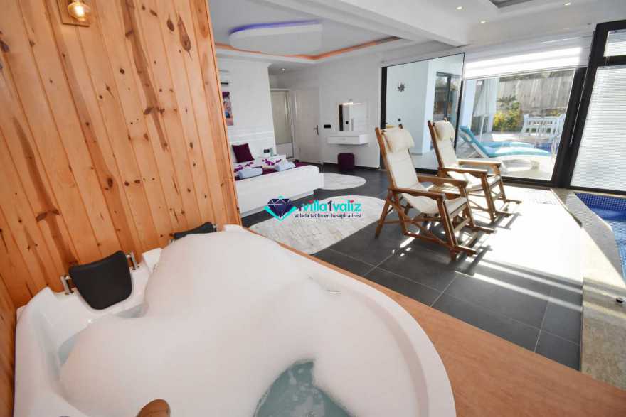 Kalkan'ın Üzümlü mevkisinde bulunan doğa manzaralı kiralık villamız Villa Elif, sizlere muhteşem bir balayı tatili imkanı sunuyor. Tek yatak odalı 2 kişi konaklama kapasiteli villamız yatak odasında bulunan jakuzisi ile sizleri lüks bir tatile davet ediyor. Villamız tek katlı olup, bahçe katı korunaklıdır. muhafazakar aileler için oldukça uygun olan villamızda kapalı yüzme havuzu da bulunmaktadır. Yatak odası ve salonu oldukça geniş ve ferah bir yapıda olan jakuzili villamızda kullanılan eşyalar oldukça moderndir. Villa Elif'te konakladığınız süre boyunca ihityacınız olabilecek tüm temel eşyalar villa içerisinde mevcut ve kullanımınıza açıktır.