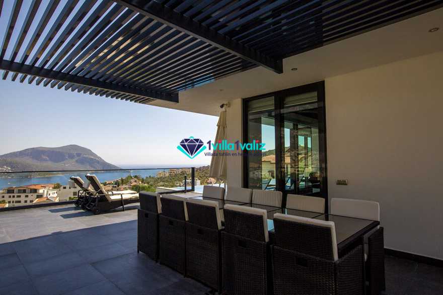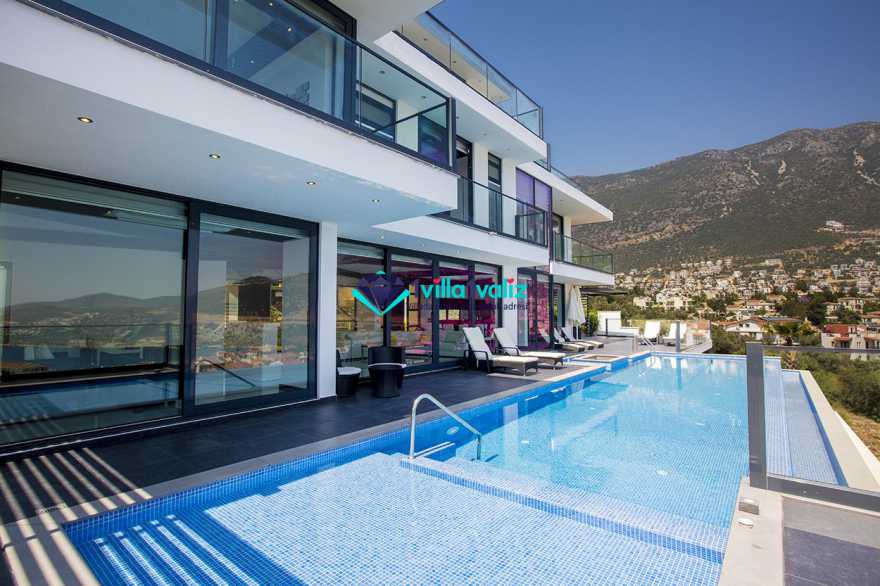 Kiralık Lüks Villamız Elite Kalkan ve Kalkan adalar manzarasına sahip olup sonsuzluk havuzunada kendinizi engin bir denizde hissetmenizi sağlayacaktır. Kiralık villamızın havuzunda sığ havuz ve jakuzi sistemi bulunmaktadır. Çağdaş ve modern bir yapıya sahip olan villamız tüm ihtişami ile sizi ve sevdiklerinizi kaliteli bir tatile beklemektedir. Villamızın geniş bir salonu ve modern bir mutfağı bulunmaktadır. 5 yatak odası ve 5 adet banyo bulunmaktadır. Kalkan'ın şimdiden en elit kiralık yazlık villalar arasında kendine bir yer edinmiştir.